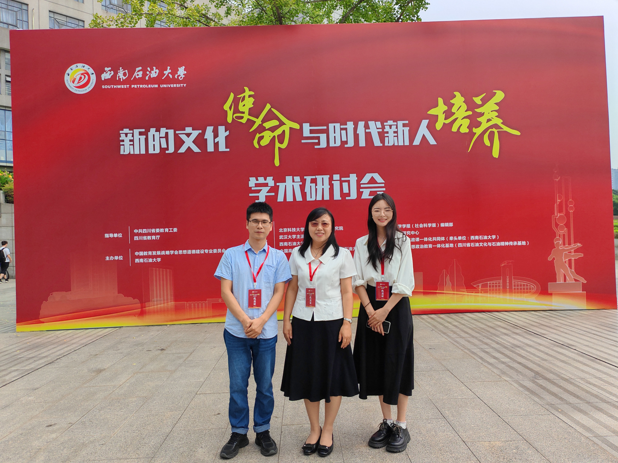 2024年9月28日由中国教育发展战略学会思想道德建设专业委员会和西南石油大学主办,北京科技大学思想政治工作研究院和西南石油大学马克思主义学院等承办的“新的文化使命与时代新人培养”学术研讨会在西南石油大学(成都校区)举行。我院副院长邱高会教授、青年教师陈琼博士受邀参会并做主题发言,2023级研究生赵双欢参会并做发言。