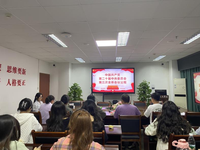 9月29日晚,“右木”读书会在7教1607举办“学习贯彻党的二十届三中全会精神”读书活动。本次活动围绕中国共产党第二十届中央委员会第三次全体会议公报(以下简称《公报》)、中共中央关于进一步全面深化改革、推进中国式现代化的决定(以下简称《决定》)、关于《中共中央关于进一步全面深化改革、推进中国式现代化的决定》的说明(以下简称《说明》)等文件进行集中学习分享,学院张旭老师、读书会会长王宇霖、团支书孙媛以及2024级全体研究生参加。