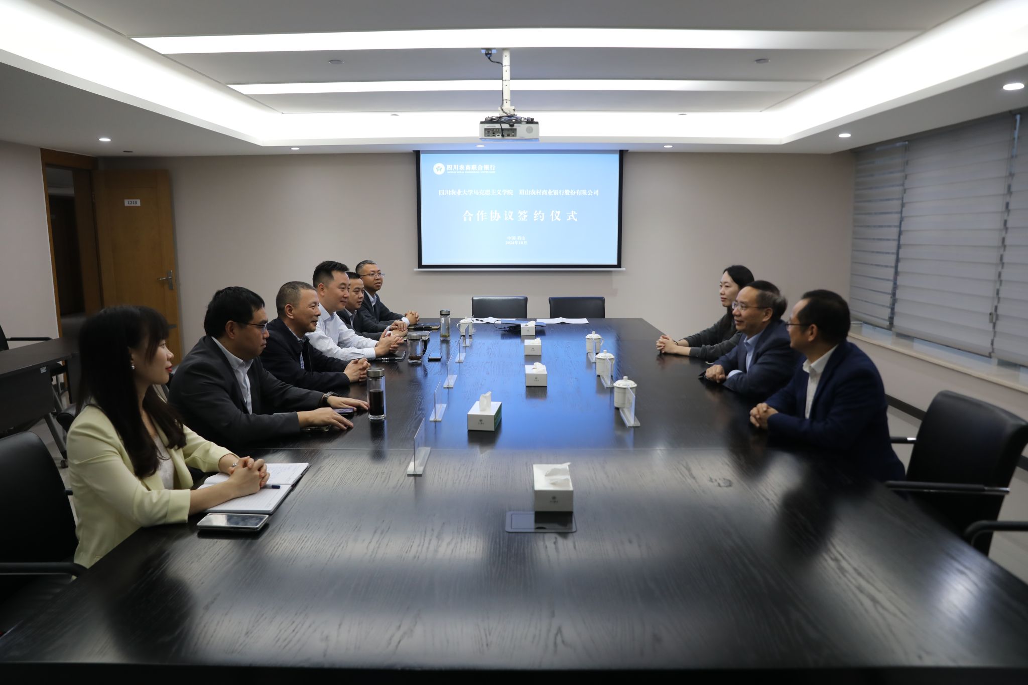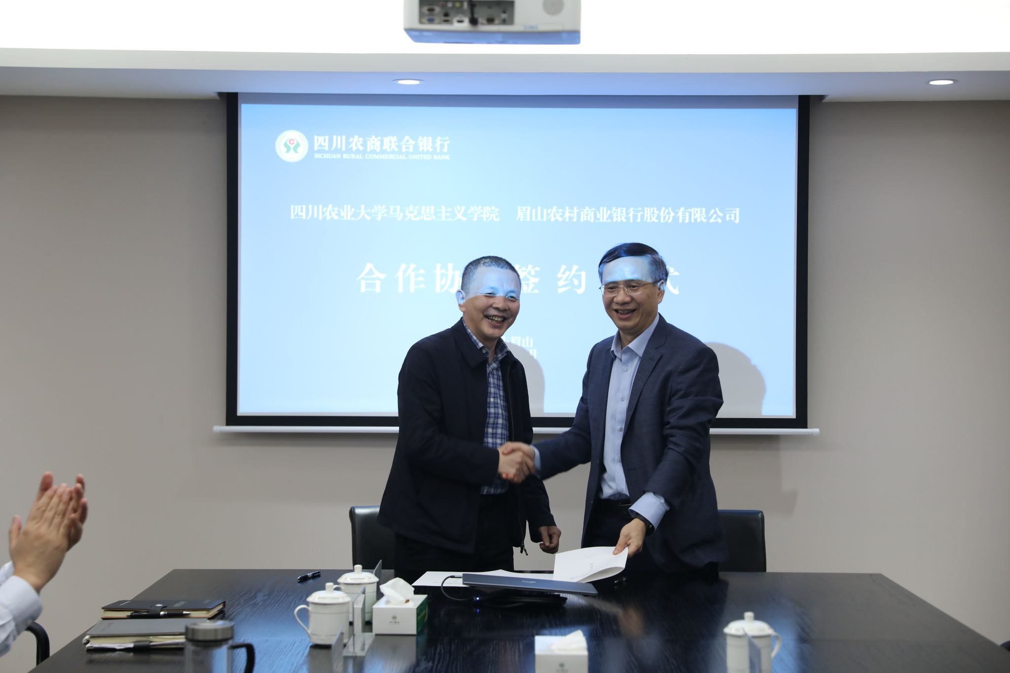 为更好地发挥党建引领作用,发挥学院服务“三农”金融主力军的社会服务职能,促进合作共赢,10月24日下午,ok138cn太阳集团529马克思主义学院与眉山市农商银行签署校地合作协议并进行座谈。学校党委常委、宣传部部长、马克思主义学院党委书记蒋远胜,学院党委副书记颜怀坤,学院党政办副主任张艳玲和农商银行领导参加签约仪式。仪式由眉山市农商银行董事长陈书明主持。