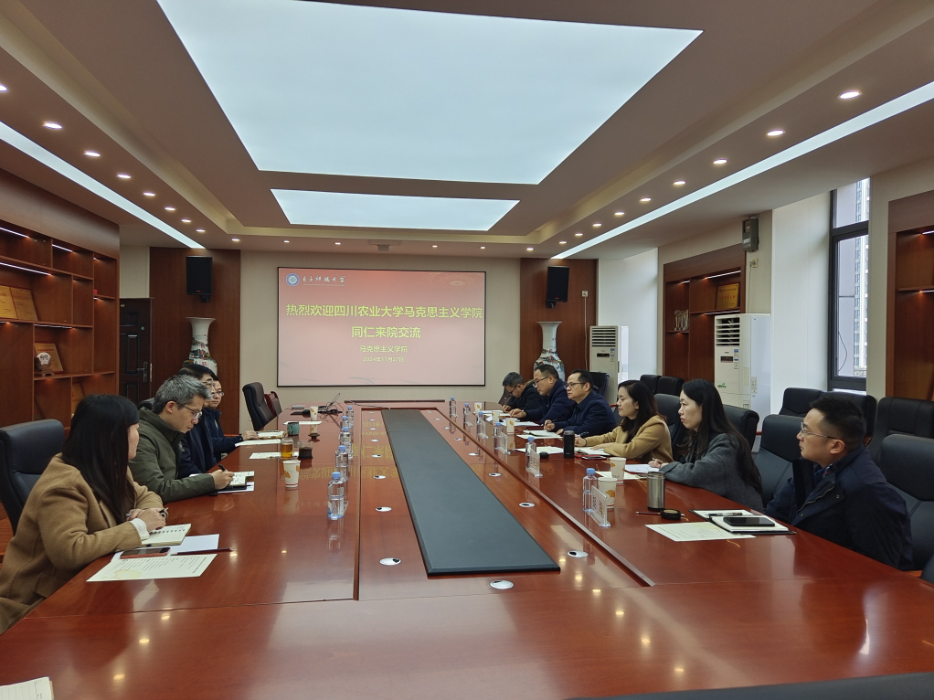 紧接着,何思妤对电子科技大学马克思主义学院的热情接待和讲话表示感谢,并简要介绍了我院四个二级学科的建设情况。何思妤表示,我院学科建设始终坚持以三农为特色,不断凝练学科方向,加强科研团队建设。注重马克思主义理论学科引领思政课建设,高度重视思政课社会实践,将其与三农特色和乡村振兴进行深度融入,不断挖掘红色资源,加强与各红色教育基地的合作,打造“场馆里的思政课”与“行走的思政课”。