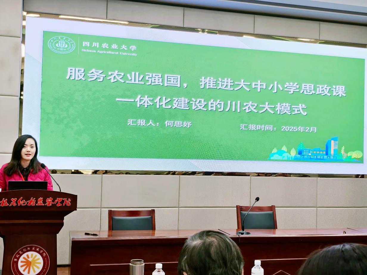在研讨会的主旨发言环节。何思妤院长以“服务农业强国,推进大中小学思政课一体化建设的川农大模式”为题进行了分享交流,详细介绍了我校具有川农大特色的“一核三维三环”大中小学思政课一体化建设模式。