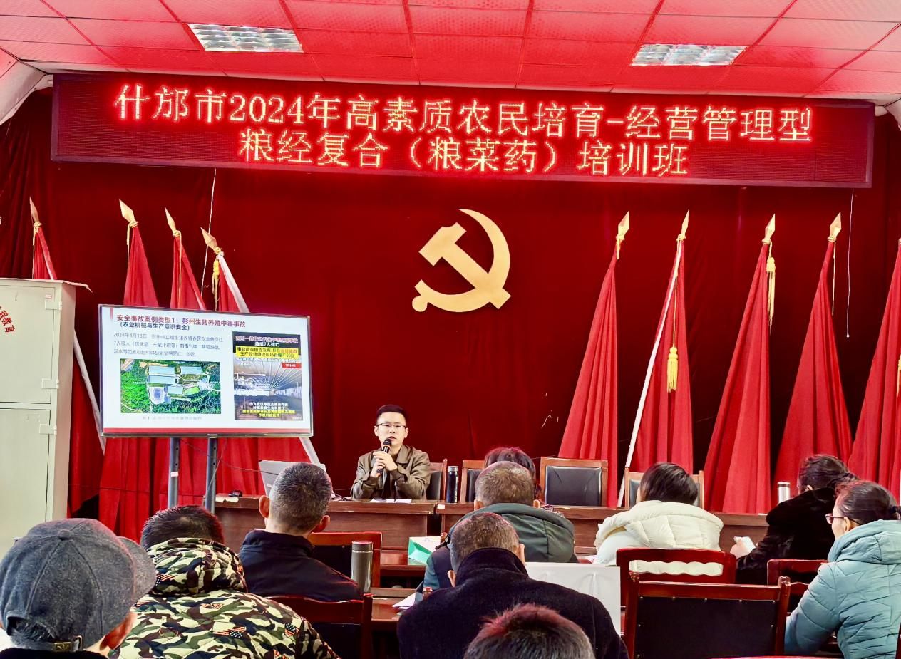 1月16日,我院宫高杰老师应德阳市什邡市农业农村局邀请,为什邡市2024年高素质农民暨“经营管理型粮经复合(粮菜药)”培训班进行理论培训,来自什邡各种植大户、农村个体经营者以及家庭农场负责人等共计50余人参加培训。