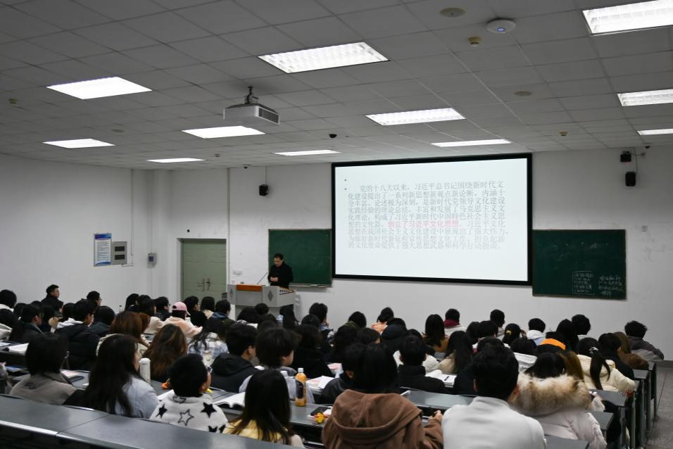 3月5日下午,四川省社会科学院院长杨颖来到我校,以“深入学习领会习近平文化思想”为题,为我校环境设计、经济学专业2023级学子带来一场别开生面的思政课。这是马克思主义学院进一步办好思政课的举措之一,通过汇聚多方合力,倾力建设大师资体系,邀请领导干部、教学名师和社会各界知名人士走进思想政治理论课大课堂,守正创新推动思政课建设内涵式发展。