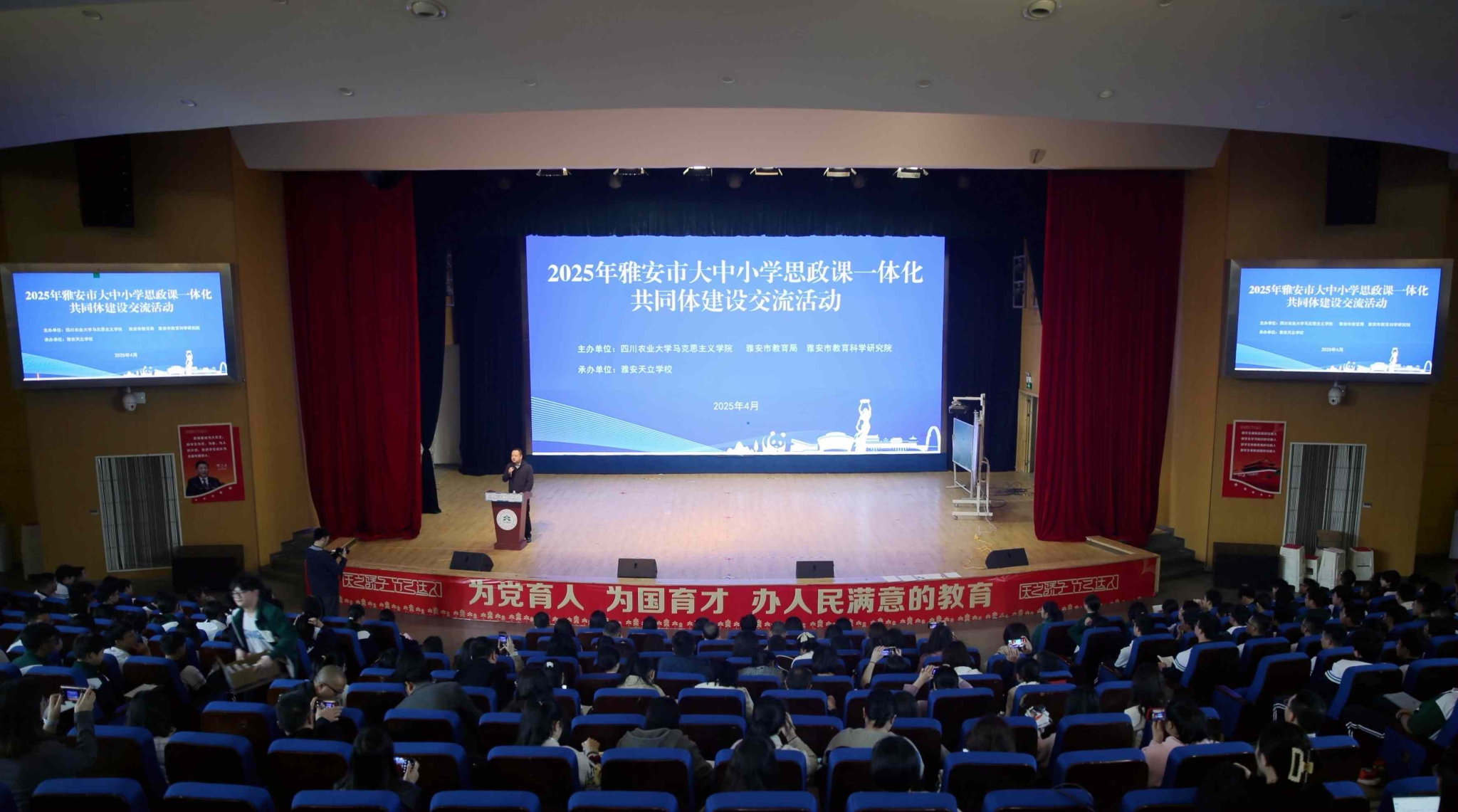 4月9日,雅安市大中小学思政课一体化共同体建设交流活动在雅安天立学校隆重举行。本次活动由雅安市教育局与学校马克思主义学院联合主办,旨在深入学习贯彻习近平总书记在学校思想政治理论课教师座谈会上的讲话精神,推动雅安市大中小学思政课一体化共同体建设,提升全学段思政课教学质量。市教科院、各县(区)教研室、学校马克思主义学院及市中小学众多思政教育工作者参与活动。