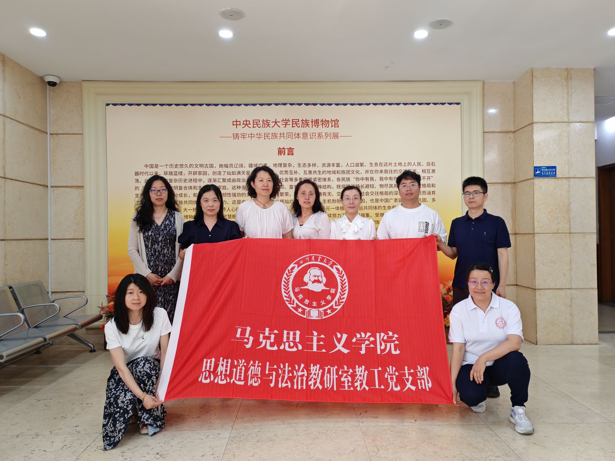 座谈会后,我院交流团队参观了中央民族大学校内的民族博物馆。通过实地考察丰富的馆藏资源与展陈设计,教师们获得了将中华民族共同体理论转化为生动思政教学实践的直接启发,为未来优化相关课程的教学内容与方法、增强教学实效性积累了重要经验。