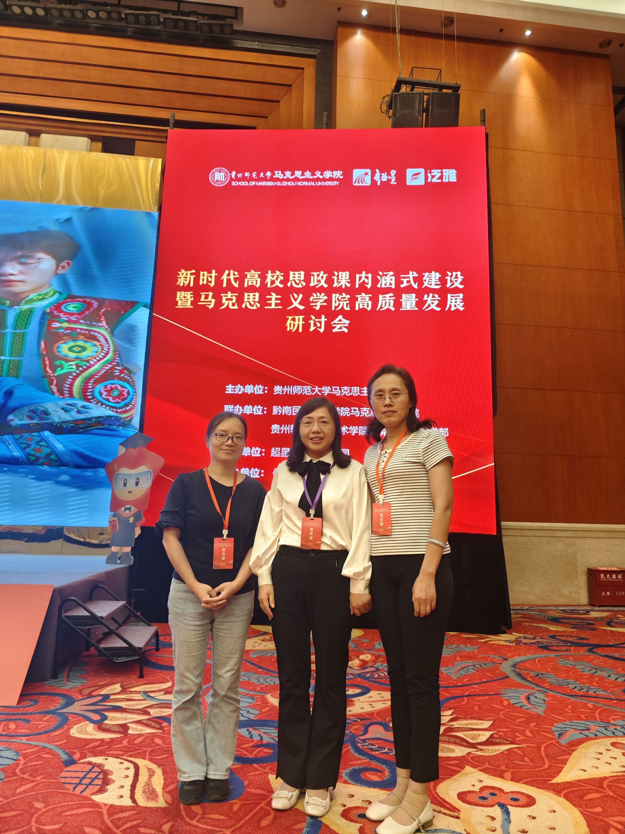 2025年7月10-12日,由贵州师范大学马克思主义学院主办,黔南民族师范学院马克思主义学院、贵州轻工职业技术学院马克思主义教学部联合主办,超星集团有限公司承办,《新时代马克思主义论丛》协办的新时代高校思政课内涵式建设暨马克思主义学院高质量发展研讨会在贵州贵阳召开。来自全国马克思主义学院的领导、专家学者和一线教师围绕“思政课教师队伍建设、高校思政课内涵式发展、AI赋能马克思主义学院高质量发展、大中小学思政课一体化建设”等主题展开研讨和交流。我院副院长邱高会、思想道德与法治教研室主任李晓辉、都江堰教学部主任杜伟老师参会。