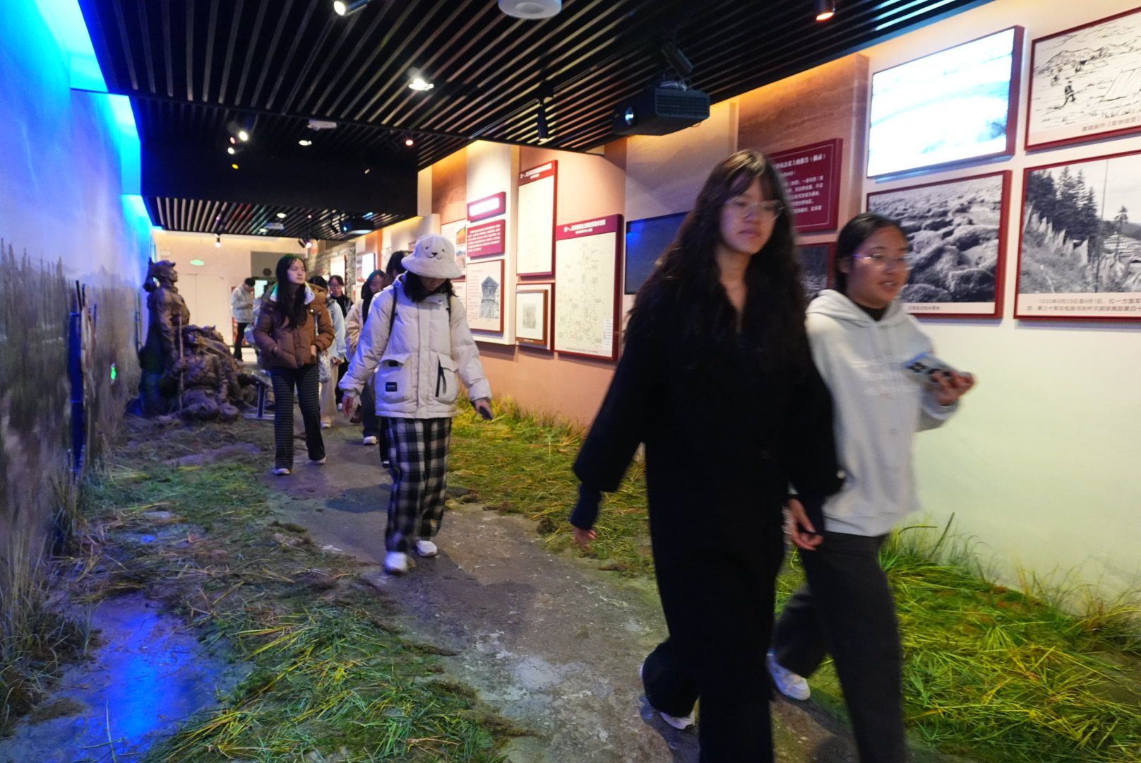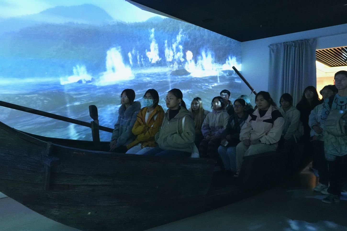 为增强学习体验,纪念馆引入了现代化的科技手段。师生们兴致勃勃地参与了现场VR体验,通过虚拟现实技术“亲历”了中央红军长征过程中的重要事件,如飞夺泸定桥、过雪山草地等,沉浸式感受了长征的艰苦卓绝。最令同学们感到震撼的是,大家还有机会坐上按原样复制的翘首木船,在现场“数字强渡大渡河”的声光电效果中,模拟体验当年红军勇士在汹涌波涛中奋勇强渡的情景。这种跨越时空的体验,使书本上的历史变得可感可触,让长征精神更加深刻地印入心田。