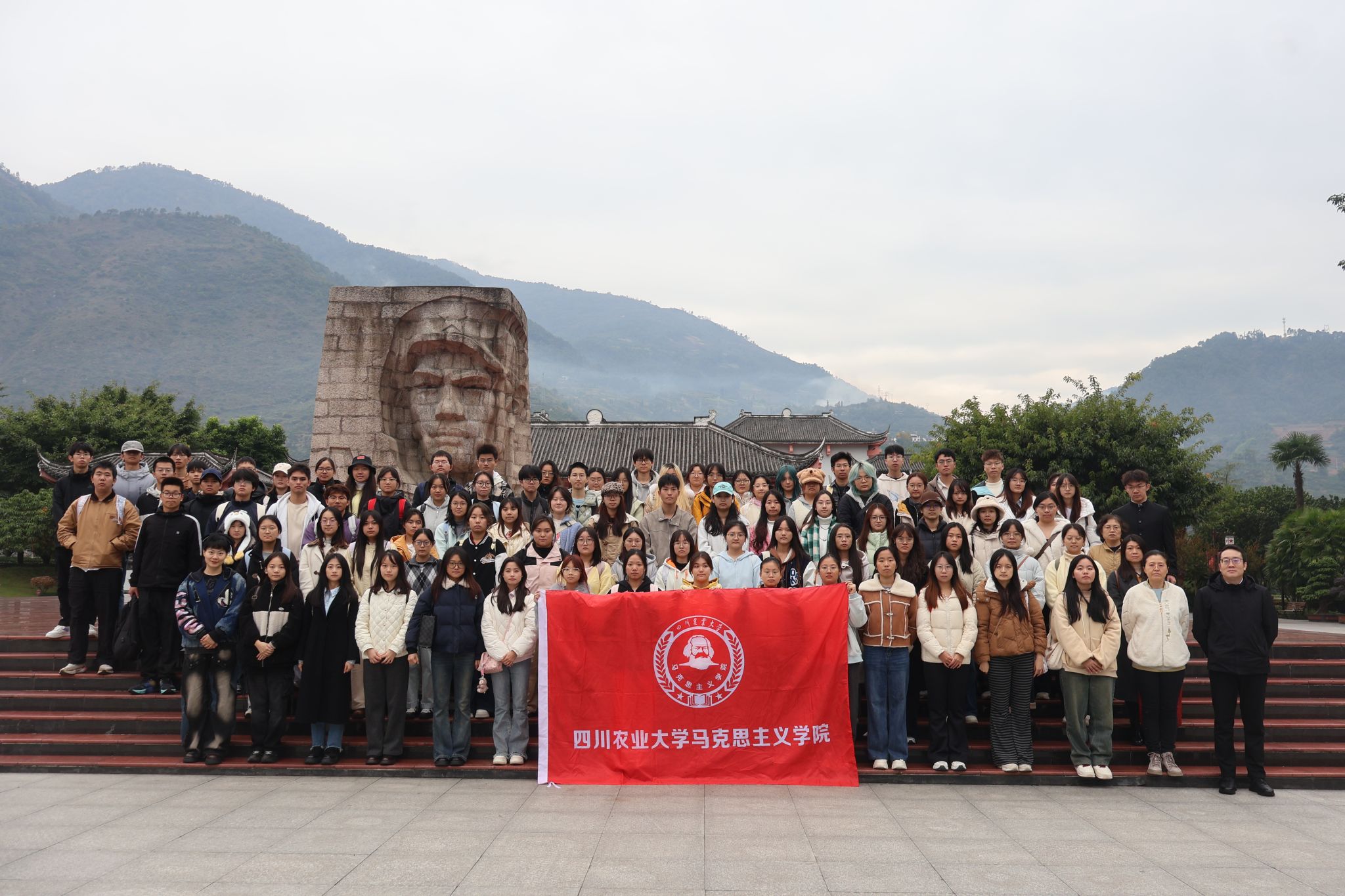 为深切缅怀革命先辈的丰功伟绩,传承弘扬伟大长征精神,学院于1116日组织雅安校区100余名学生代表赴全国爱国主义教育基地、校级教学实践基地——中国工农红军强渡大渡河纪念馆,开展了一堂生动而深刻的“场馆里的思政课”。本次活动由学院思政课实践教研室主任何宇、毛中特教研室主任、学院教学督导委员会主任孟志宏带队,雅安教学部主任李迪慧、副主任李雕,毛中特教研室邵紫瑛等老师共同参与指导。
