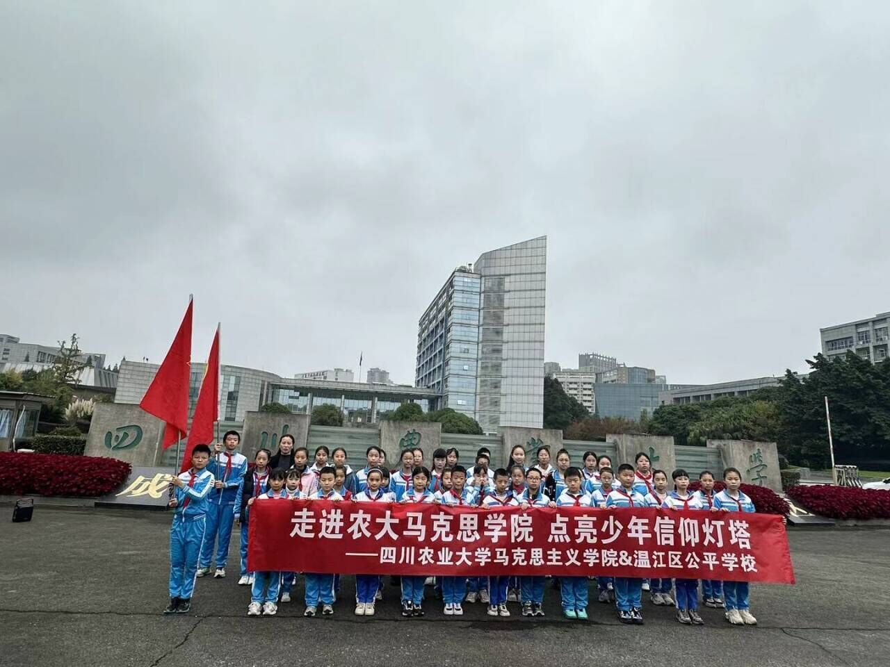 此次校园参观与红色宣讲相结合的活动,是我校马克思主义学院推动大中小学思政教育一体化建设的生动实践。通过“大学—小学”牵手同行,不仅拓展了基础阶段学生的视野,更在沉浸式、场景化的教育中实现了红色基因的代际传递。未来,我校将继续深化与各大中小学的合作,让红色基因代代相传,让川农大精神在服务立德树人根本任务中绽放新的时代光芒。