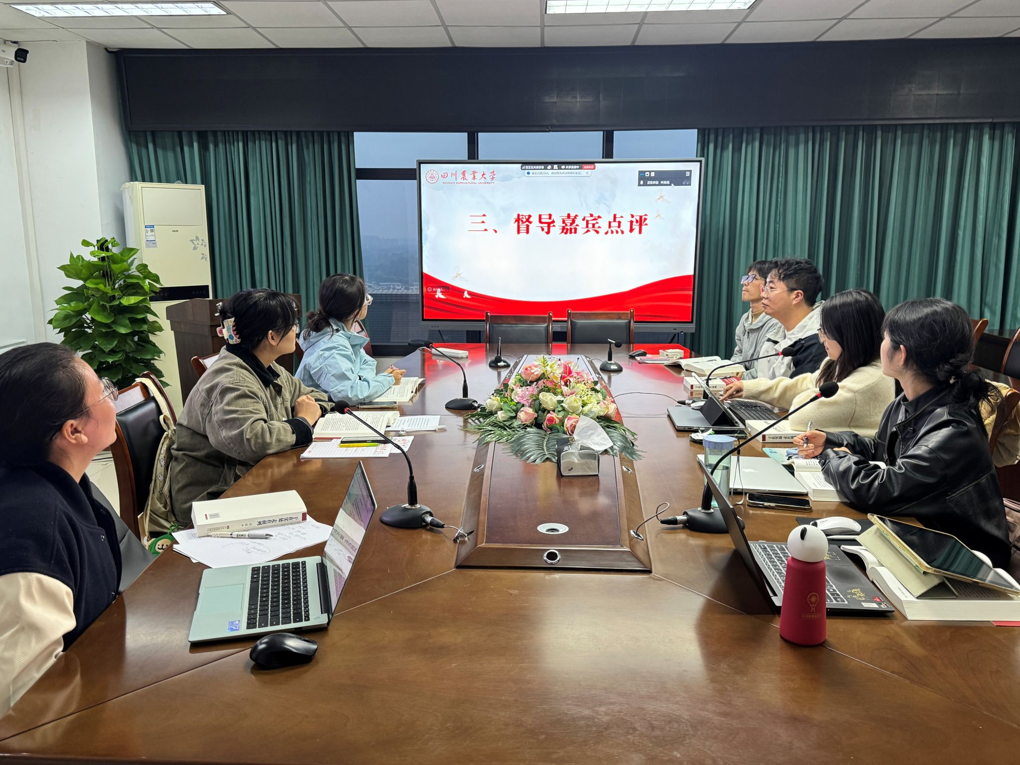 在督导点评环节,督导嘉宾对小组的前期工作和本次活动的质量给予了高度肯定,认为研究内容紧扣时代主题,体现了理论联系实际的优良学风。紧接着,小组负责人唐鸿林向督导组简要汇报了自成立以来的活动开展情况,截至目前,小组已累计开展五次高质量的线下读书活动,并完成了首次督导。随后,负责人向督导嘉宾现场展示了初步研究成果,顺利完成了材料核查工作。最后的交流环节,督导员与同学们就汇报内容及未来研究方向进行了深入探讨。