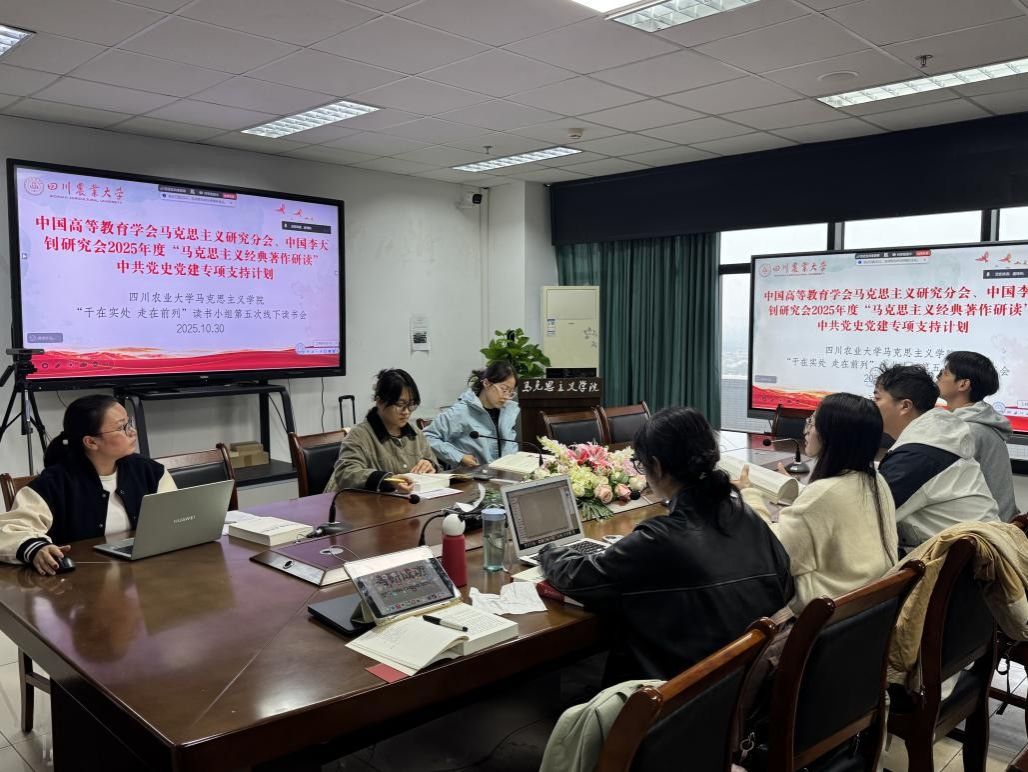 2025年10月30日,中国高等教育学会马克思主义研究分会、中国李大钊研究会2025年度“马克思主义经典著作研读”中共党史党建专项支持计划——ok138cn太阳集团529“干在实处,走在前列”读书小组全体成员在七教1607举行第五次线下读书分享活动,围绕习近平总书记的著作《干在实处,走在前列——推进浙江新发展的思考与实践》进行讨论交流。本次会议依据项目组委会的《中期检查细则》要求,同步作为小组的中期检查活动,并顺利接受了督导组的现场督查。