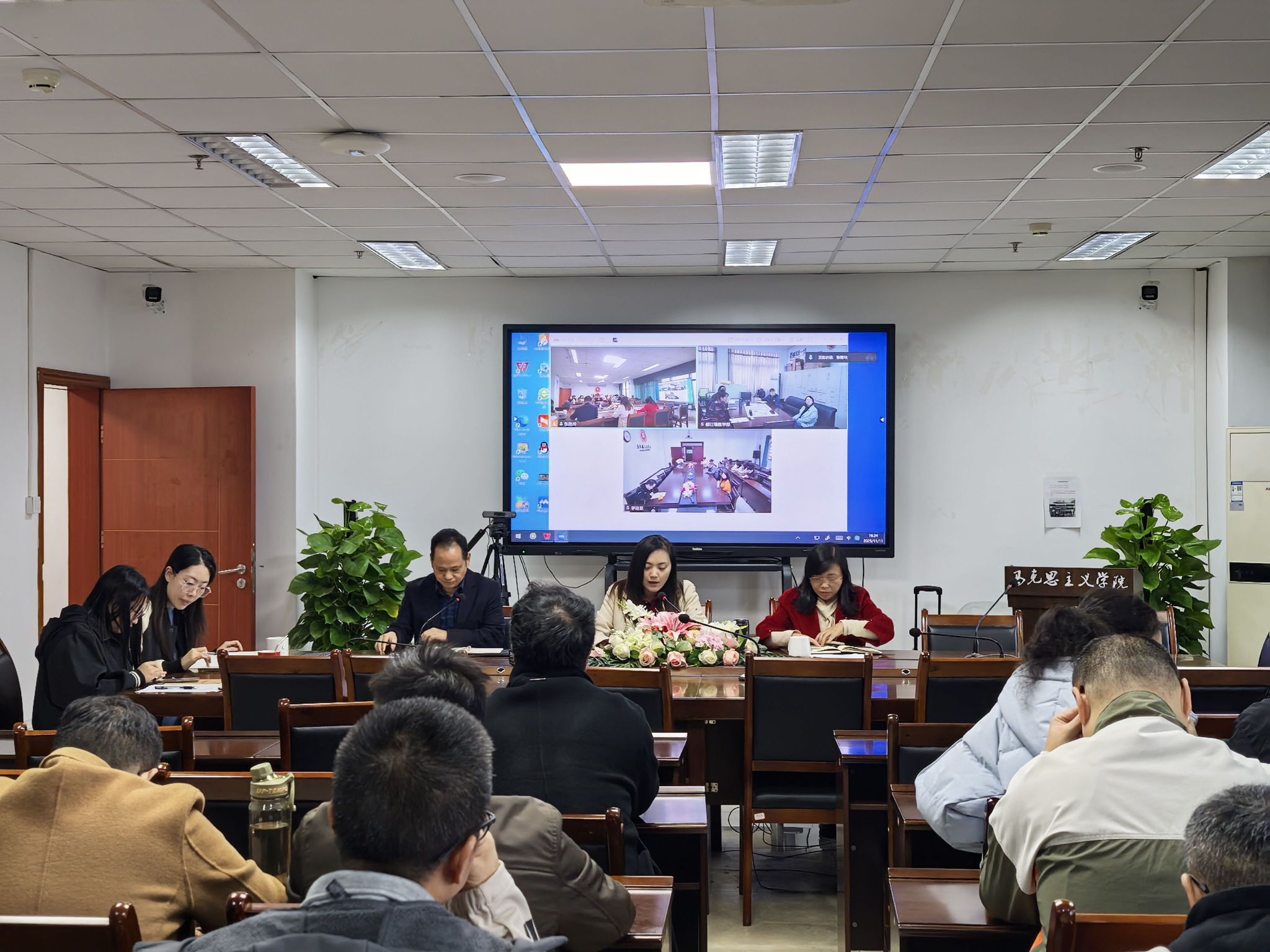 为深入学习贯彻党的二十届四中全会精神,扎实推进全面从严治党向纵深发展,马克思主义学院于2025年11月11日下午在7-1607会议室召开专题学习会暨全面从严治党工作会议。学院全体教职工参会,会议由党委书记颜怀坤主持。