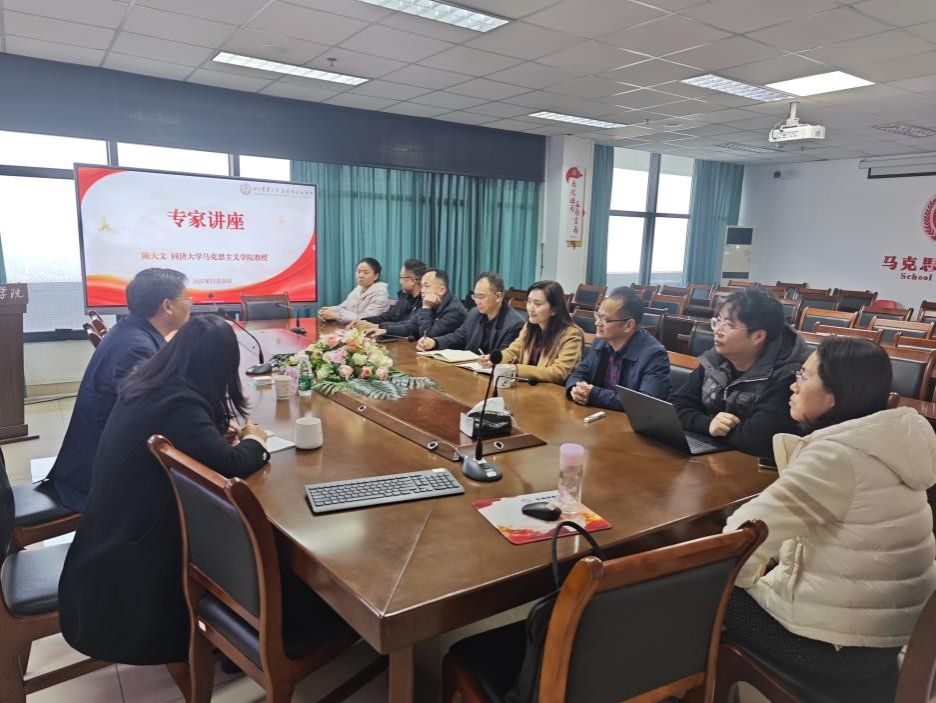 为深化思政课改革创新,提升教师队伍教学科研水平,科学谋划学院未来发展,20251128日下午,我院特邀同济大学长聘教授、国家级人才教学名师、教育部思想道德与法治分教学指导委员会副主任委员陈大文教授莅临我院指导。