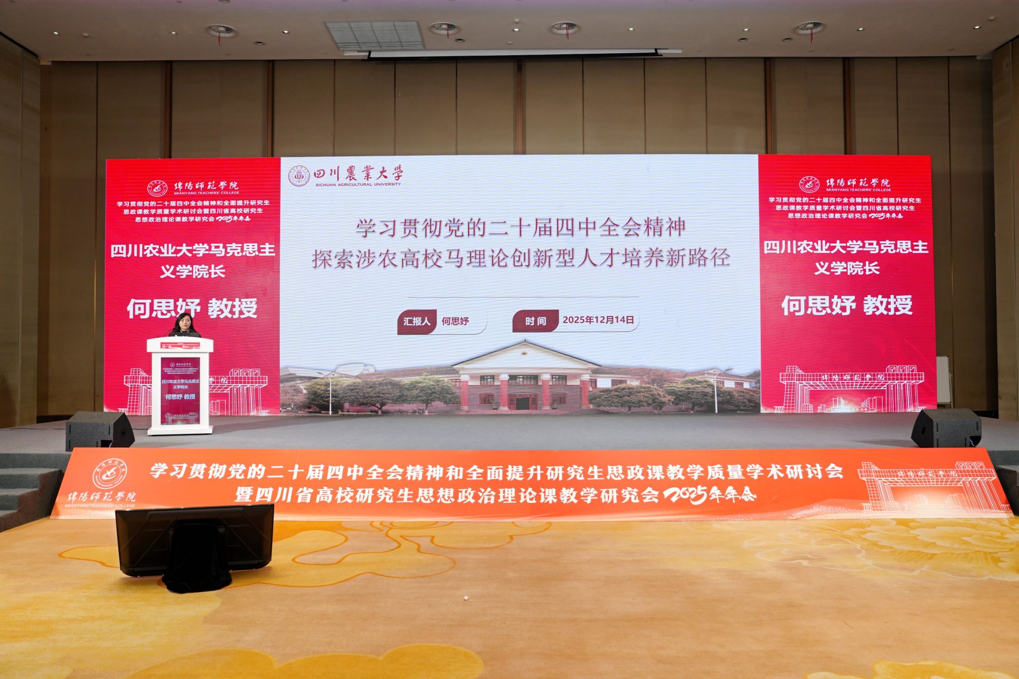 12月14日,学习贯彻党的二十届四中全会精神、全面提升研究生思政课教学质量学术研讨会暨四川省高校研究生思想政治理论课教学研究会2025年年会在绵阳师范学院举行。本次会议由中共四川省委教育工委、四川省教育厅指导,绵阳师范学院、四川省高校研究生思想政治理论课教学研究会、全国高校思政课“手拉手”集体备课中心联合主办。来自全国6省46家单位的200余位专家学者、马院负责人及师生代表齐聚一堂,共议研究生思政课高质量发展。我院院长何思妤教授与青年教师张阳丽应邀参会。