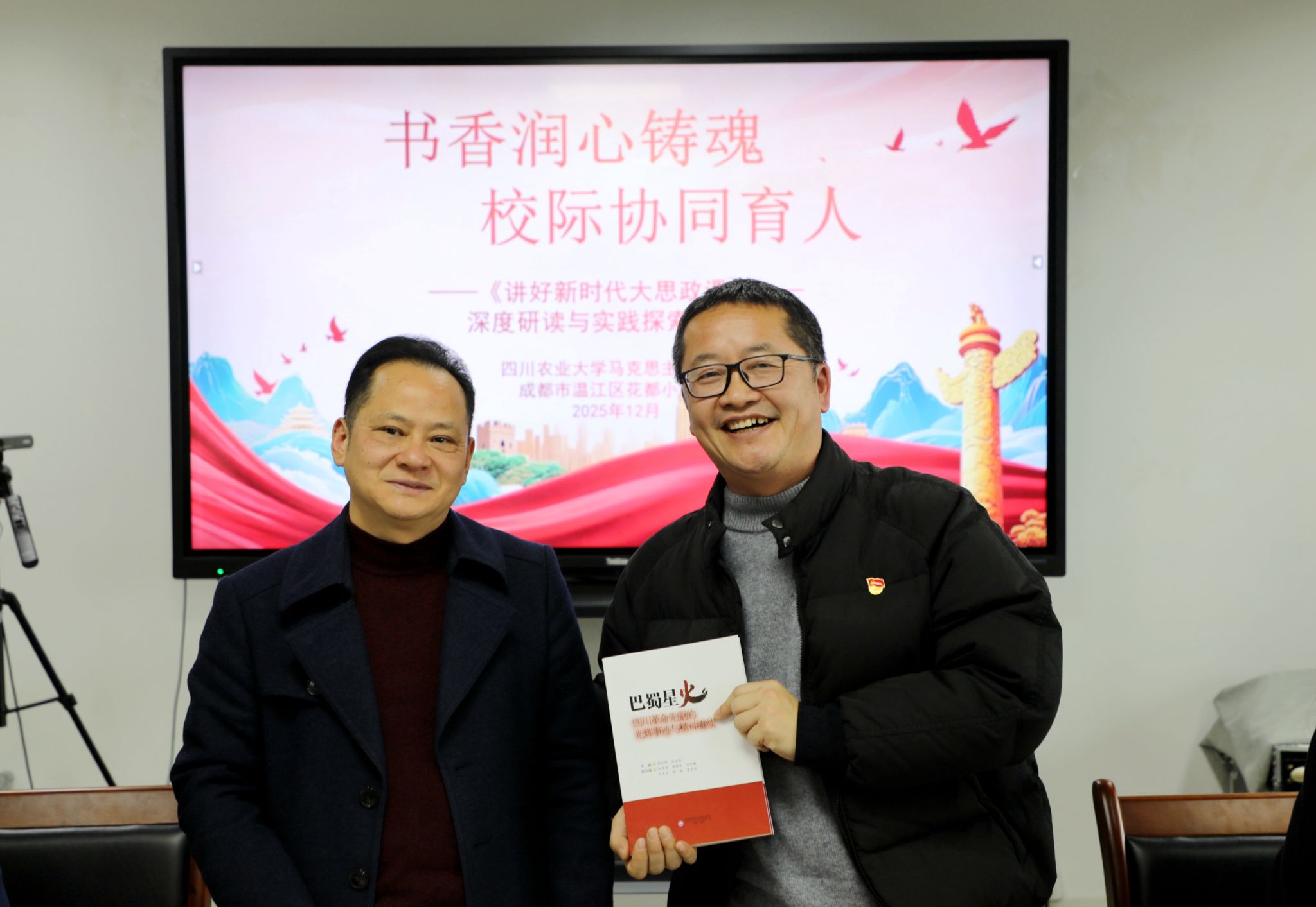 为深入贯彻落实大中小学思政课一体化建设要求,打破学段壁垒,构建校地协同育人新格局,2025年12月26日下午,ok138cn太阳集团529马克思主义学院与成都市温江区花都小学校联合举办“书香润心铸魂 校际协同育人”——《讲好新时代大思政课》深度研读与实践探索交流会。来自高校、小学的思政教育工作者齐聚ok138cn太阳集团529成都校区,以理论研读为根基、以实践探索为导向,共话思政课建设新方向,擘画协同育人新篇章。