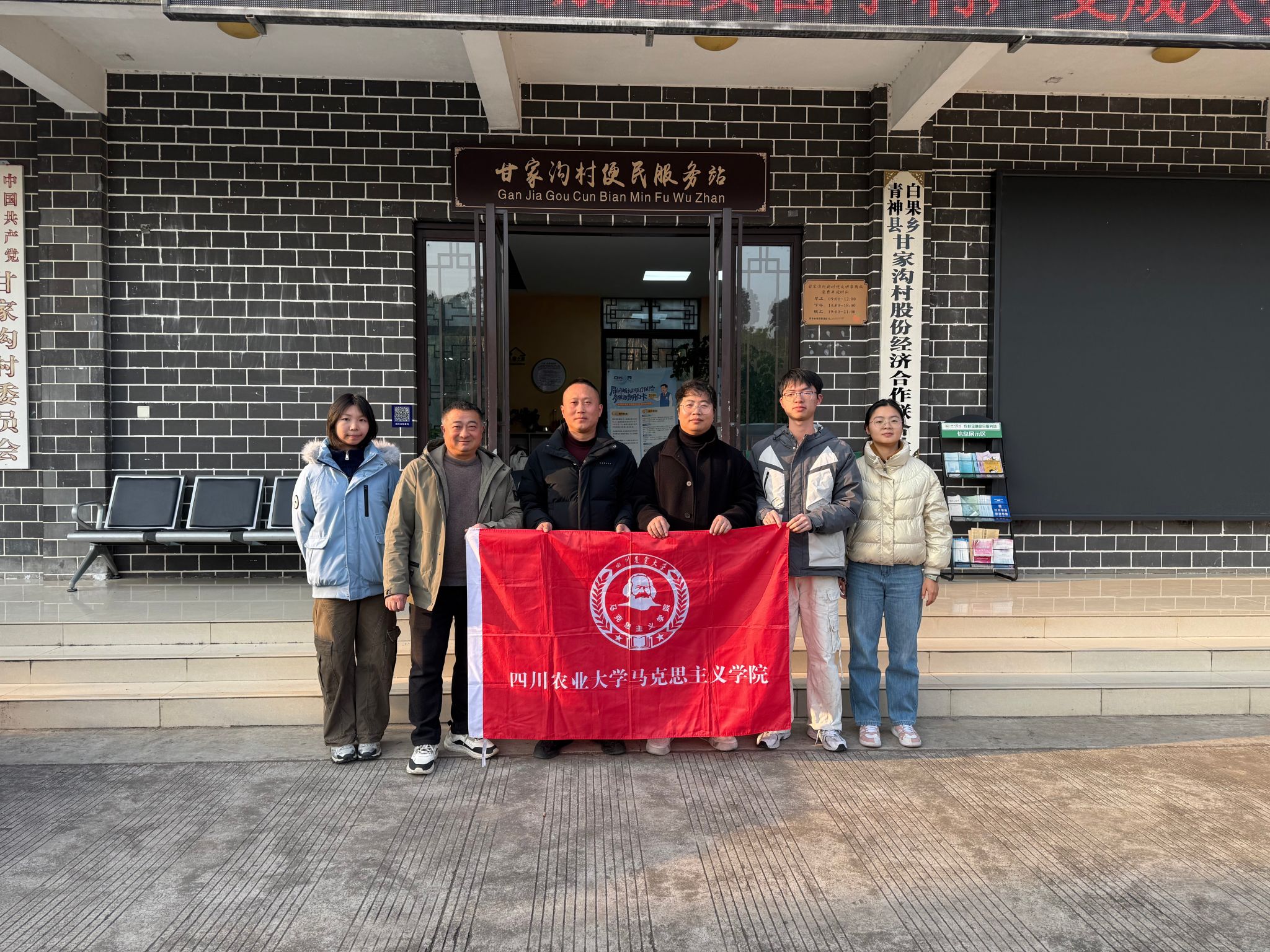 师生们围绕“数字乡村治理”“乡风文明建设”“返乡青年创业”等问题与村干部进行了热烈交流。通过访谈,团队了解到,甘家沟村不仅在经济上实现了跨越,更在治理上探索出一条有效路径。从积分制管理的推广到“红黑榜”的设立,再到村民议事会的规范化运行,一系列举措有效激发了村民参与公共事务的热情,形成了共建共治共享的良好局面。此次深入交流,使师生们对新时代乡村治理的复杂性与创造性有了更为直观和深刻的认识,深刻体悟到党的创新理论在基层的实践伟力。