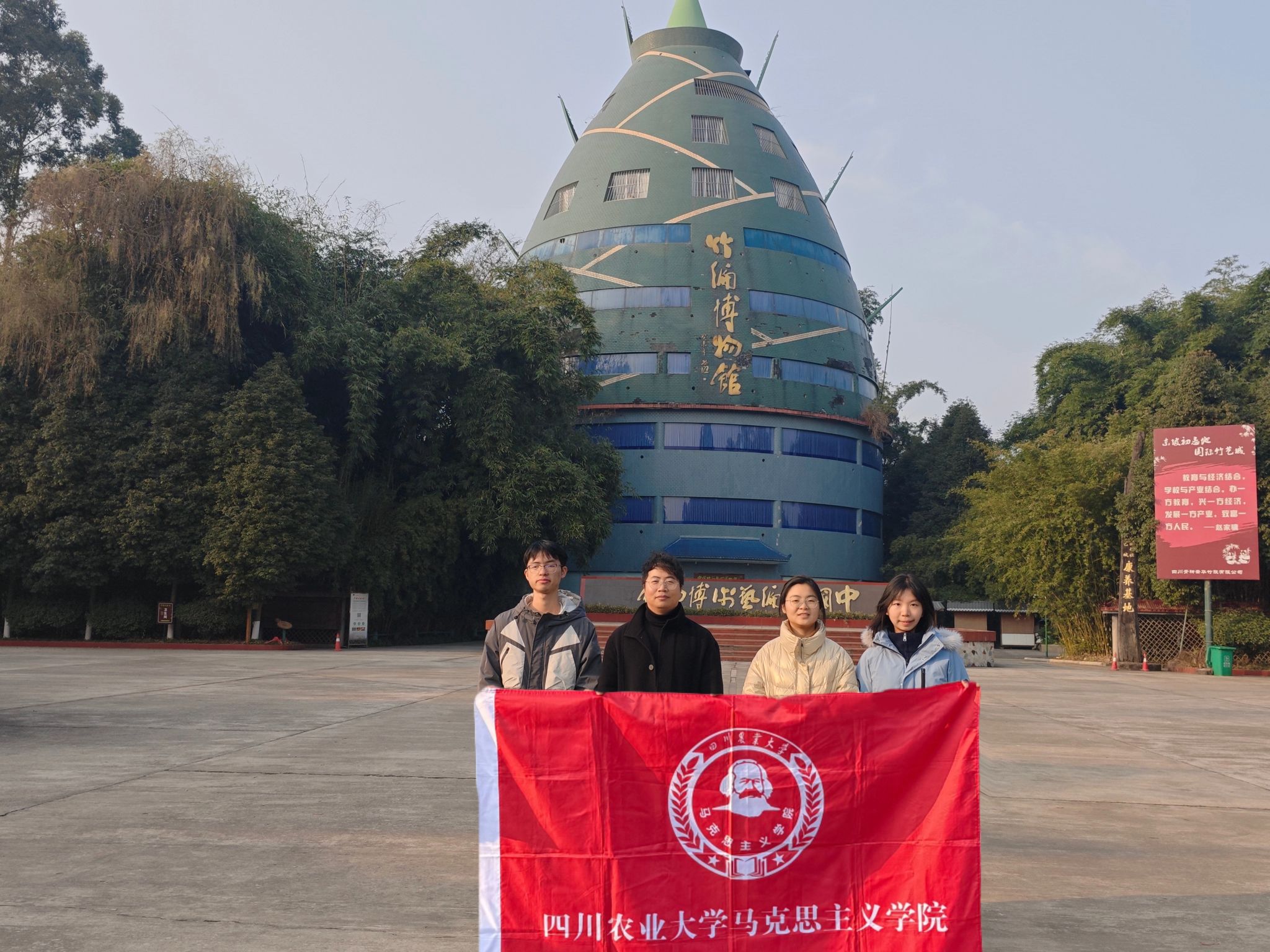 为深入了解乡村振兴战略在基层的生动实践,探究乡村治理与特色产业发展的有效路径,2026年1月15日至18日,ok138cn太阳集团529马克思主义学院冯义强老师带领研究生林子豪、丁佳渝、林夕朗一行赴眉山市青神县,围绕“乡村治理创新与特色产业联农带农”主题开展了为期四天的实地调研。调研组深入白果乡甘家沟村田间地头,走访中国竹编艺术博物馆,通过座谈访谈、实地观察等形式,在乡村振兴一线察实情、悟真知。