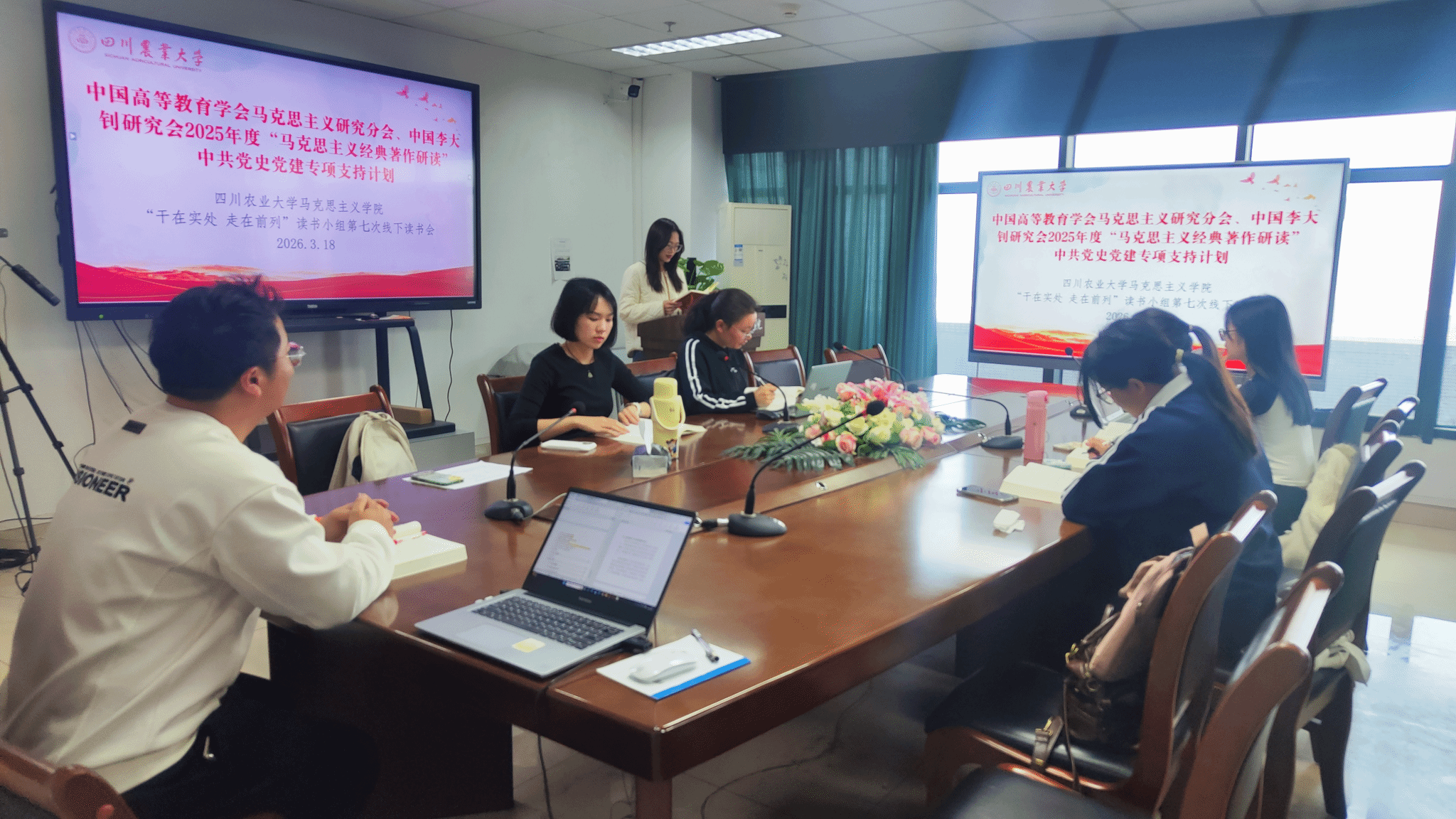 2026年3月18日,中国高等教育学会马克思主义研究分会、中国李大钊研究会2025年度“马克思主义经典著作研读”中共党史党建专项支持计划——ok138cn太阳集团529“干在实处,走在前列”读书小组全体成员在七教1607举行第七次线下读书分享活动。本次活动聚焦习近平总书记著作《干在实处,走在前列——推进浙江新发展的思考与实践》第七章“发挥各地特色和优势,增强浙江综合竞争力”,小组成员就区域差异化发展、优势资源整合及综合竞争力提升等议题展开深入研讨,旨在通过经典研读深化对新时代发展实践的认知与思考。