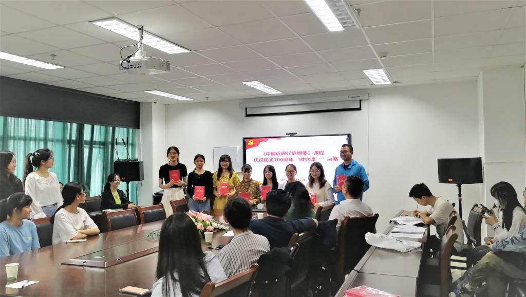 本次竞赛由学院中国近现代史纲要教研室主要面对本期《中国近现代史纲要》教学班级学生组织实施,分初赛(教案设计申报)与决赛(现场展示)两个赛段。从初赛170余份参赛教案中严选产生的决赛展示选手们依次登台展示。在有限的时间内,他们紧扣“四个选择”主题,运用丰富多彩的幻灯片、短小精悍的微视频、生动活泼的情景剧等形式,直观展示了中国共产党从红船成长为巍巍巨轮的历史片段,鲜明诠释了中国共产党历经百年风雨却长盛不衰的优势密钥,进一步弘扬了爱国情怀和时代精神。