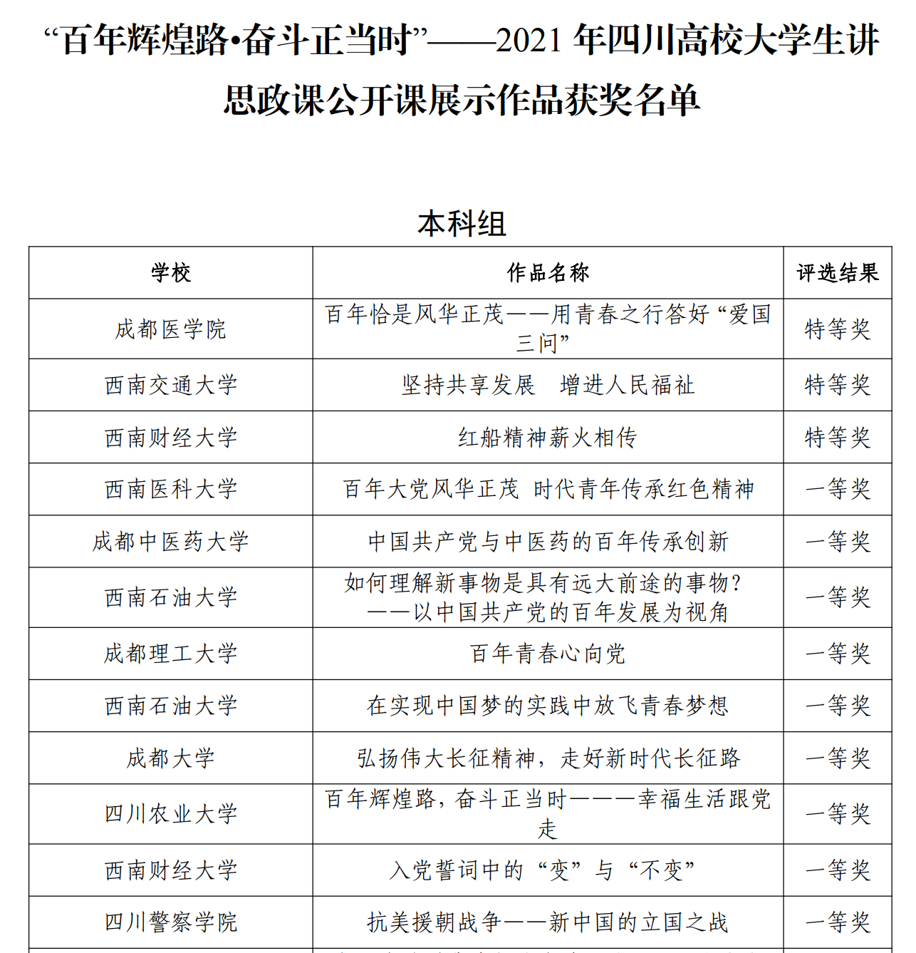 6月21日,四川省教育厅公布了“百年辉煌路·奋斗正当时”——2021年四川高校大学生讲思政课公开课展示作品获奖名单,由马克思主义学院冯义强博士领衔、基础课教研室全体教师共同参与指导的学生团队公开课展示作品《百年辉煌路,奋斗正当时——幸福道路跟党走》荣获一等奖,这是我校学生在该项展示活动获奖上的又一次突破。