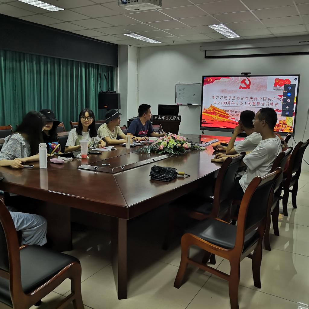 为深入学习贯彻习近平总书记在庆祝中国共产党成立100周年大会上的重要讲话精神,形成政治认同与情感共鸣,增强理论共识和实践动力,2020级研究生党团支部于7月5日在学院会议室召开分享交流会。支部全体党员、入党积极分子参加交流会,党支部书记罗荣主持。