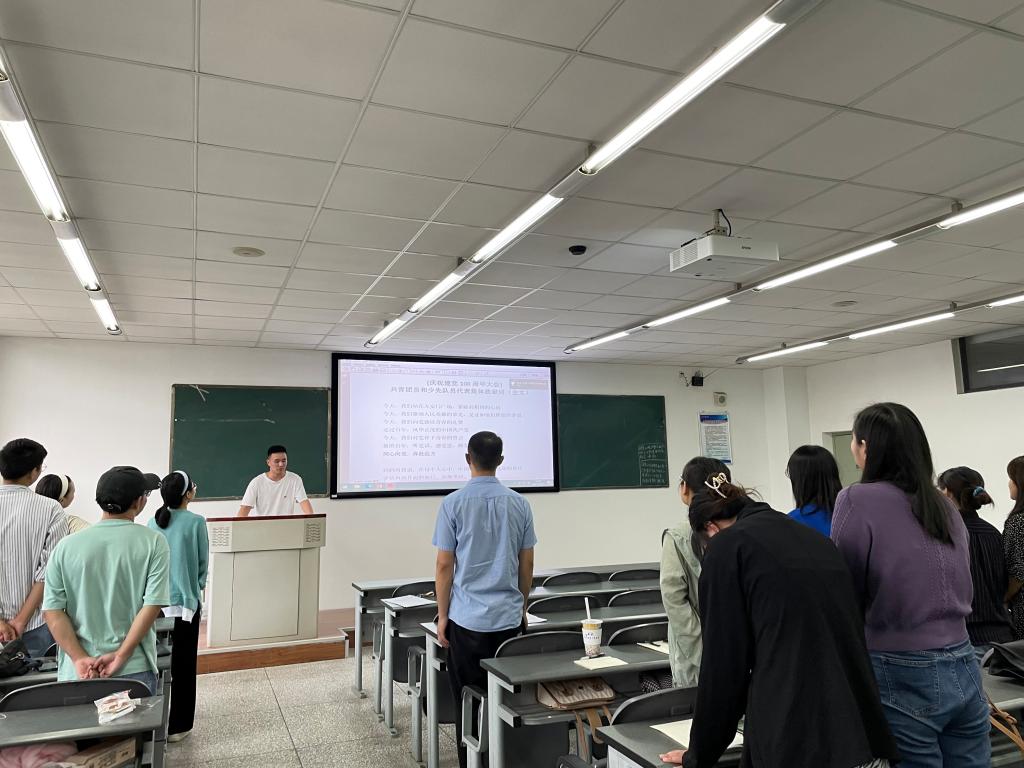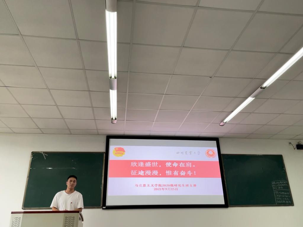 为深入学习贯彻习近平总书记在庆祝中国共产党成立100周年大会上的重要讲话精神,教育引导团员青年深入领会讲话的重大意义和丰富内涵,持续推动党史学习教育走深走实,9月15日下午,在团支部副书记罗荣的主持下,学院2020级研究生团支部于四教C610室召开了“请党放心,强国有我”主题团日活动。