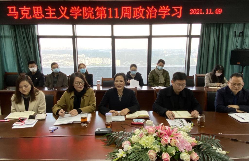 11月9日下午,学校党委常委、统战部部长杨锦秀前往马克思主义学院,与全体教师一起参加政治学习,会议由学院党委书记杨世义主持。