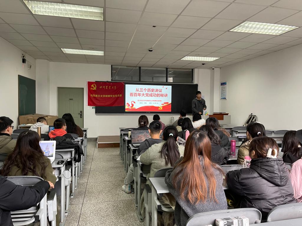 为进一步学深学实党的十九届六中全会精神,11月30日下午,2020、2021级研究生支部在4C610联合开展了“学习全会精神,争做有为青年”的主题党团活动。本次会议由学院研究生理论宣讲团成员石磊同学主讲。