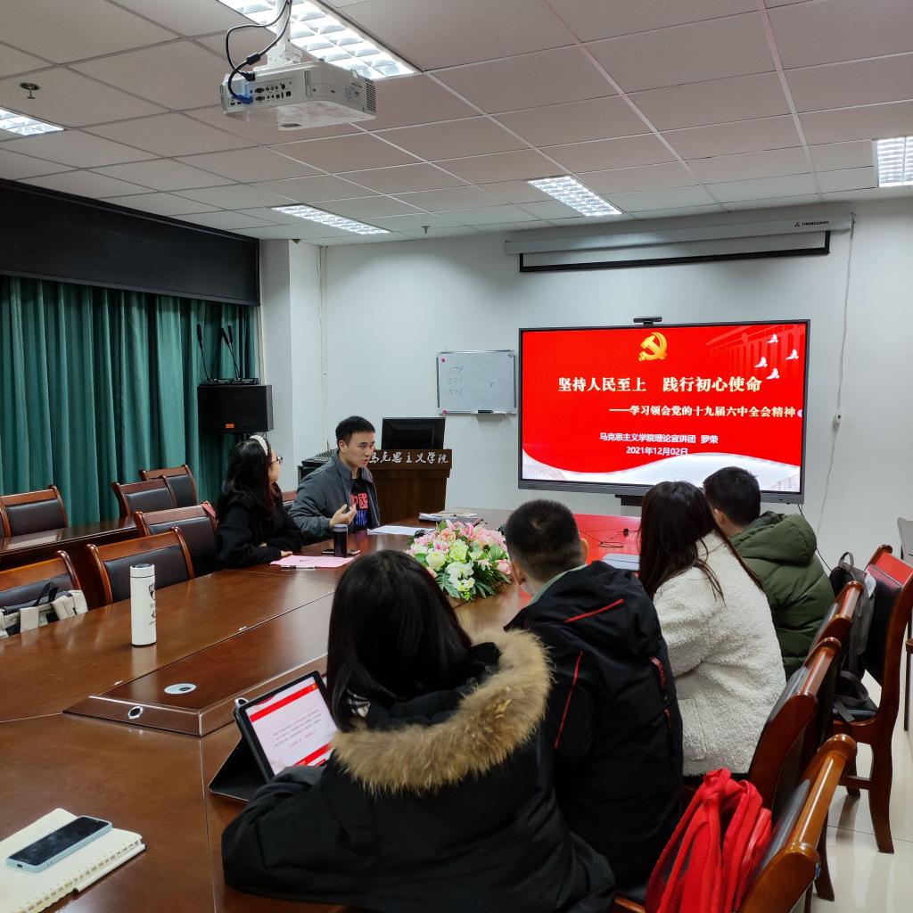 为帮助学生理论宣讲团成员进一步熟悉宣讲工作、提高宣讲技巧、增强宣讲能力,促进宣讲工作的顺利开展,2021年12月2日晚上7:00,ok138cn太阳集团529马克思主义学院学生理论宣讲团集体在西康楼1607进行了关于理论宣讲技巧的讨论交流。
