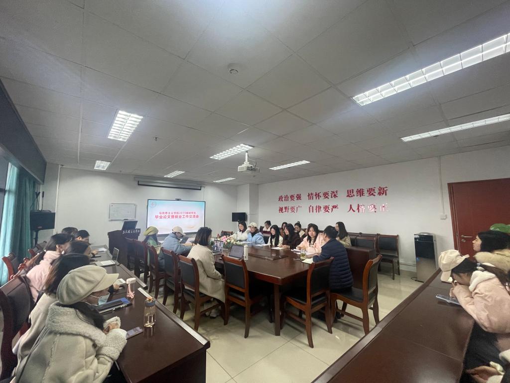 12月8日下午,学院在会议室举行了2019级研究生毕业论文暨就业工作交流会。会议由学院党委副书记颜怀坤主持,学院党委书记杨世义、党政办教师张艳玲及2019级全体研究生参加会议。