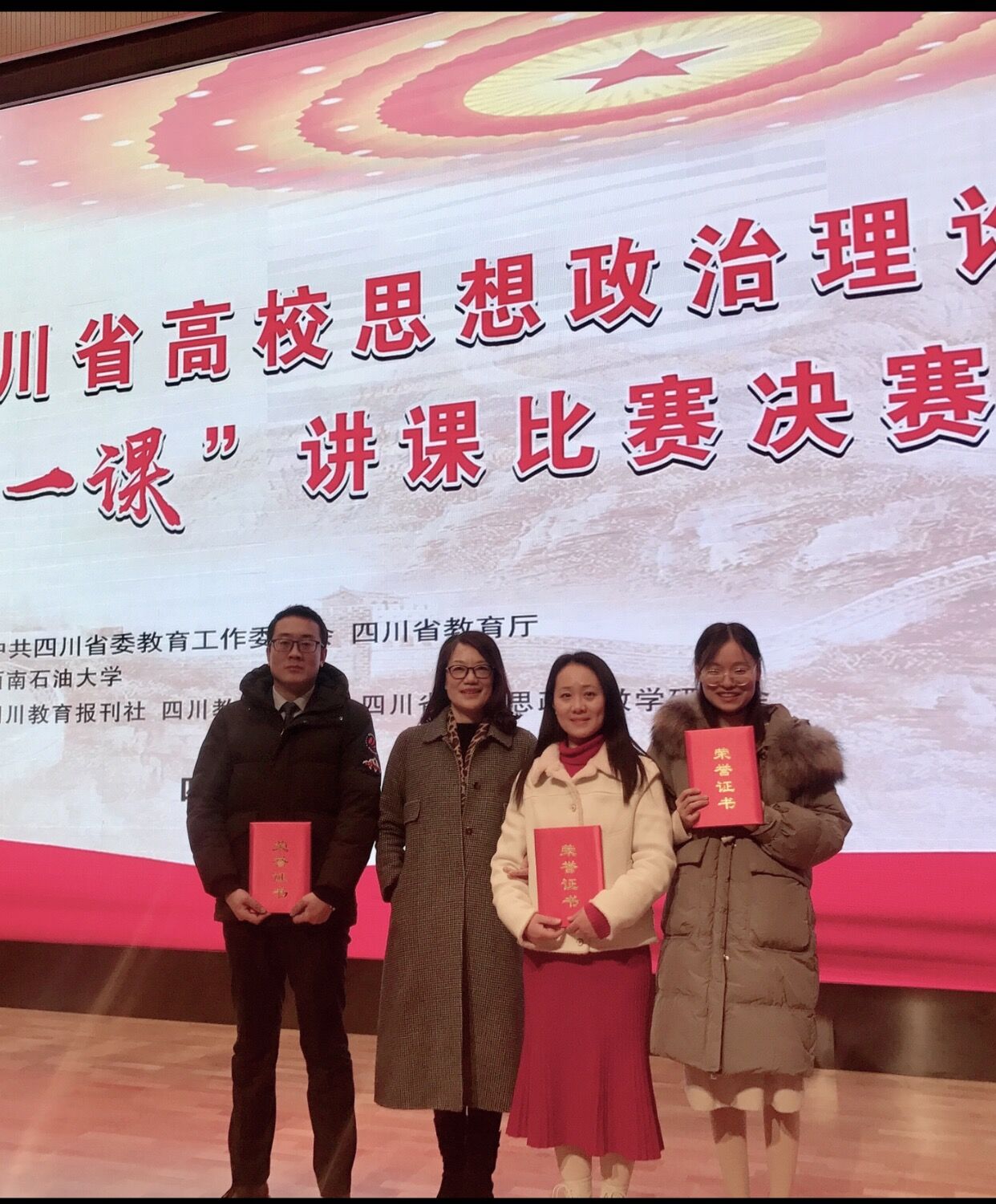 为深入学习贯彻习近平总书记在学校思想政治理论课教师座谈会上的重要讲话和“七一”重要讲话精神,学习贯彻党的十九届六中全会精神和省委十一届十次全会精神,进一步发挥高校思想政治理论课在立德树人中的关键课程作用,充分展示各高校思政课创优行动、思政课改革创新成果,引导广大思政课教师更加投入教学、钻研教学。12月10日,2021年四川省高校思想政治理论课“精彩一课”讲课比赛决赛在西南石油大学举行。我校教师荣获一等奖1项、二等奖2项。