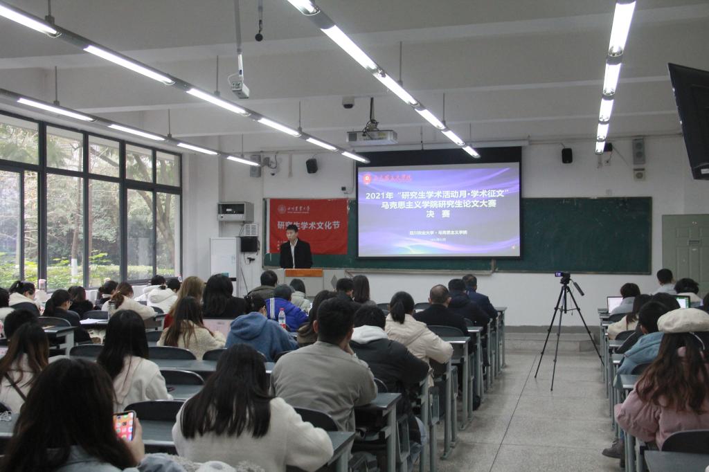 12月14日下午,为培养研究生科学精神和创新意识,提高研究生学术科研能力,促进研究生科研育人质量提升,马克思主义学院于成都校区4-B107室成功举办了“研究生学术活动月·学术征文”决赛。校研工部部长、研究生院副院长李武生、马克思主义学院院长赵晓霞、学院党委书记杨世义、学院教师陈建锋、伍洋及冯义强担任评委。