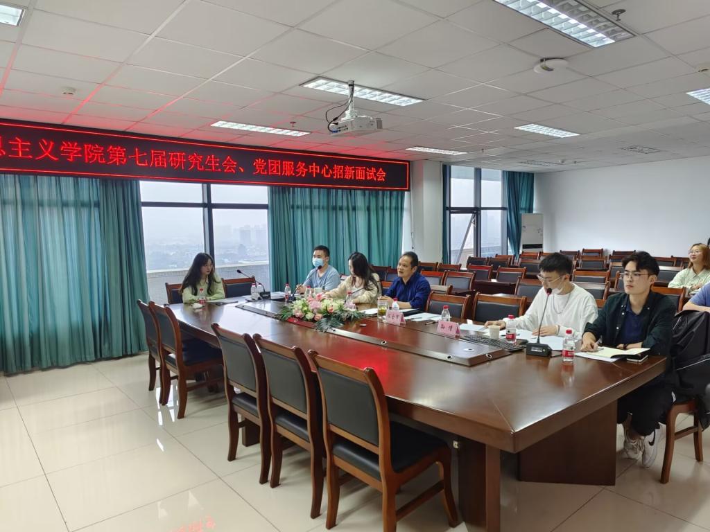 9月16日下午,学院研究生会联合党团服务中心进行招新面试会,会议线上线下同步进行。学院党委副书记颜怀坤、党政办主任陈金军、副主任张艳玲、孙倩老师以及党团服务中心、研究生会主要学生干部参会。