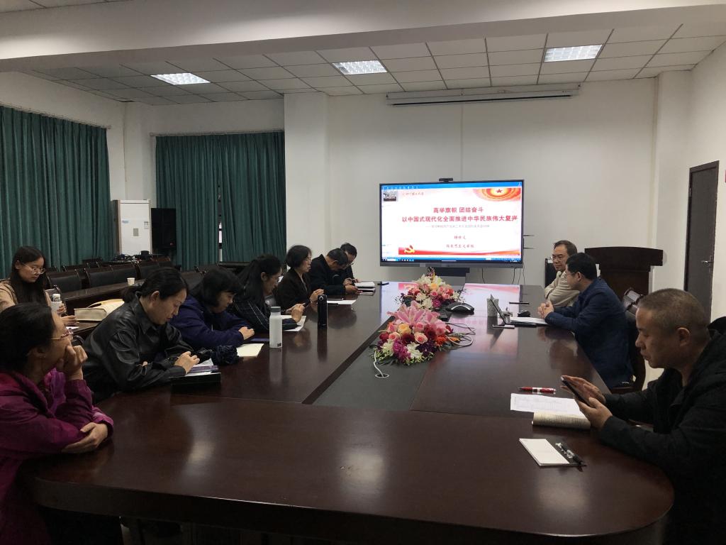 10月25日,学院召开党的二十大精神专题学习会,学校党委常委、统战部部长、院长杨锦秀,院党委书记杨世义,院党委副书记颜怀坤,副院长何思妤及全体教师与会。