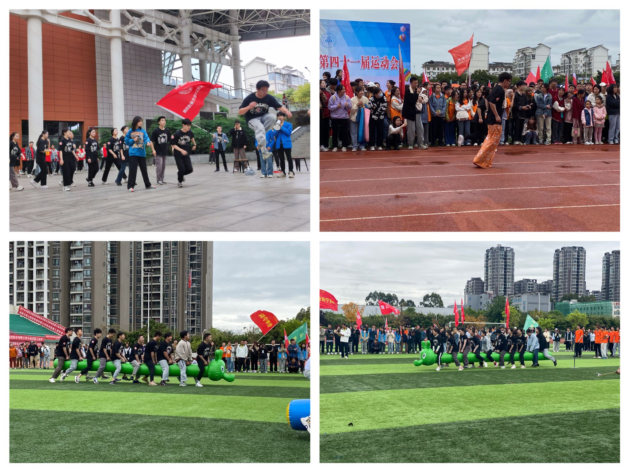 在第二天的比赛中,我们院同学参加了“跳绳、袋鼠跳接力赛、毛毛虫竞速赛”的团体项目,同学们热情的投入,即紧张又有趣,又增加了比赛场上热闹的气氛,体现了同学间的相互协助能力。