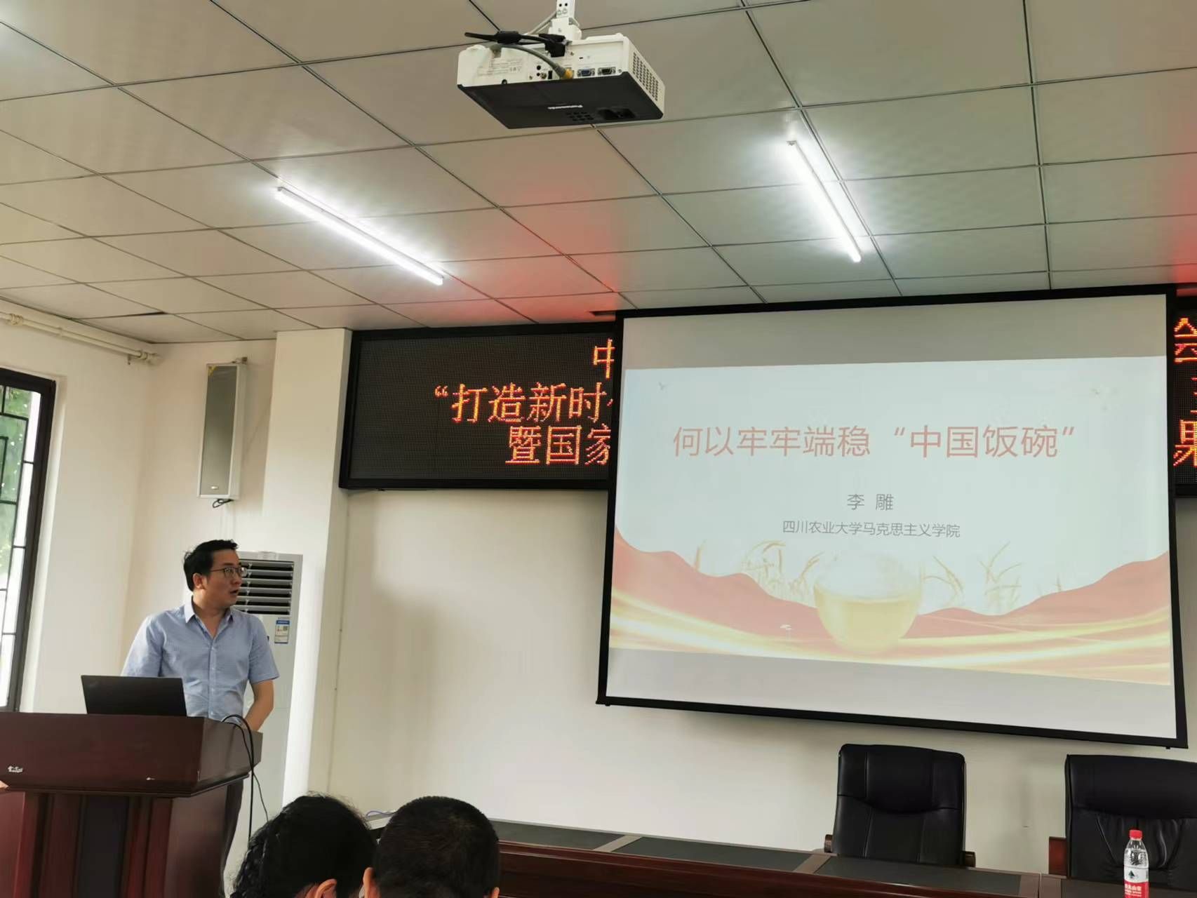 在关于习近平总书记打造新时代更高水平“天府粮仓”重要论述的教学观摩与交流环节中,李雕老师做了题为《何以牢牢端稳“中国饭碗”》的现场教学展示。