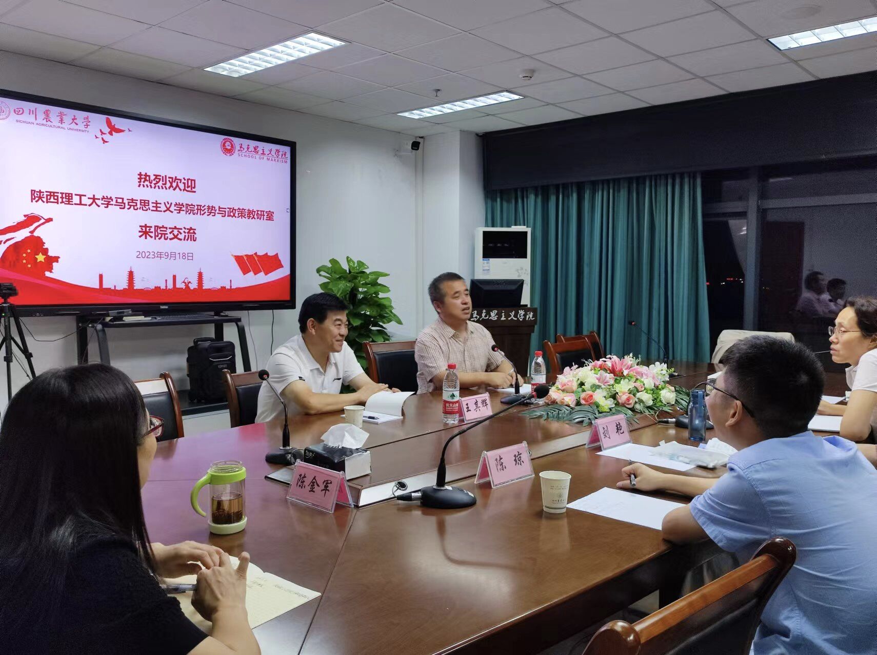 9月18日,陕西理工大学形势与政策教研室主任孙朋一行来院考察交流,马院形势与政策教研室主任李晓辉、党政办公室主任陈金军及刘艳、王蕾、陈琼等老师热情接待了来访客人。