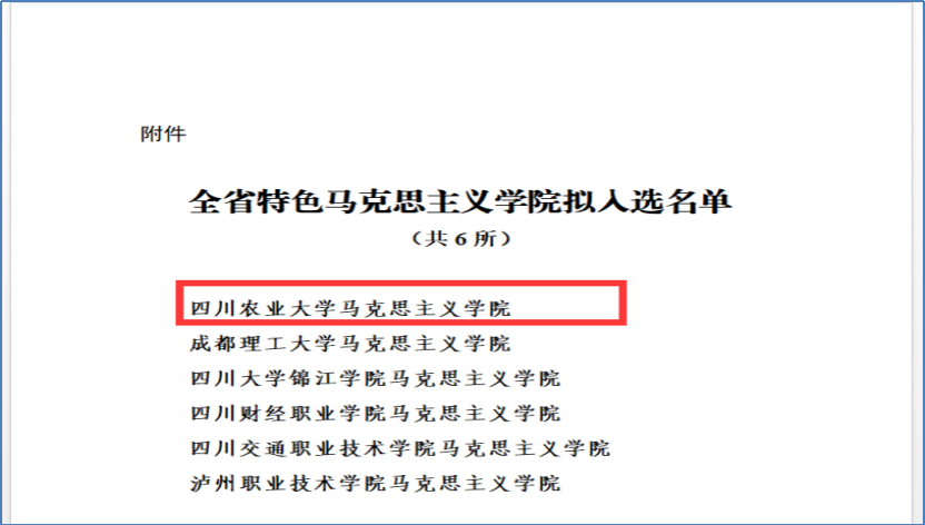 近日,中共四川省委宣传部、四川省教育厅联合发布《关于全省特色马克思主义学院遴选结果的公示》:根据省委宣传部、教育厅《关于做好全省特色马克思主义学院建设遴选工作的通知》要求,经组织申报、资格审查、专家评审,并报经省委宣传部部务会审议通过,拟确定ok138cn太阳集团529马克思主义学院等6所马克思主义学院为全省特色马克思主义学院。