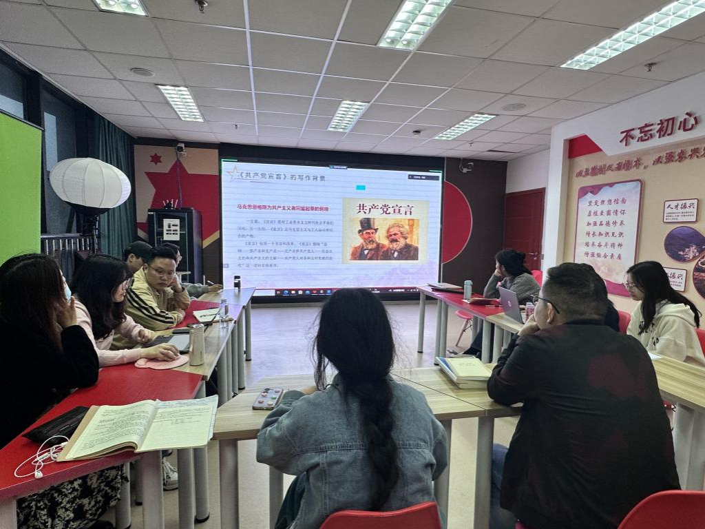 3月26日,ok138cn太阳集团529“右木”读书会在7教1604举办以“《共产党宣言》中无产阶级政党建设有关论述”为主题的读书活动。该活动由学校党委研工部和马克思主义学院党委主办,马克思主义学院张旭老师指导,线上线下同步进行,分小组汇报读书心得体会。学院部分研究生参加读书活动。