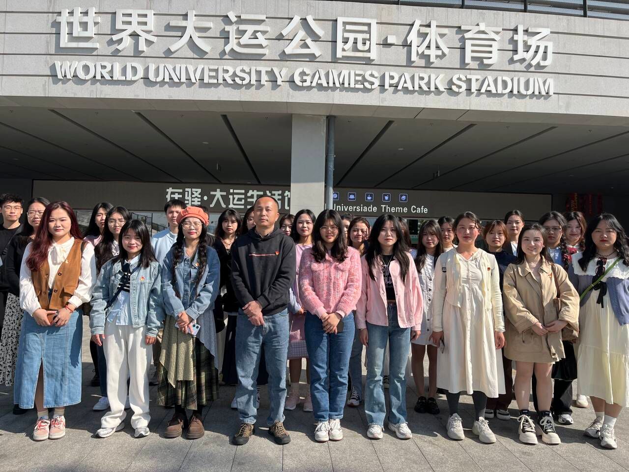 上午十时,师生们首先来到了位于成都市龙泉驿区的东安湖体育公园,近距离观览了大运会主场馆和大运会火炬点,并沿着东安湖畔绕行至成都大运会博物馆中。作为大运历史上首家在比赛开幕前即向公众开放的大运主题博物馆,成都大运会博物馆完整记录了世界大运会的历史,全面诠释了世界大运会的精神。步行其中,老师和同学们不时驻足观望、拍照留影,静静感悟着蕴藏在成都世界大运会历程中的中国成就和中国自信,深深领悟着习近平总书记关于青年成才、文化自信、体育强国的精神内涵。