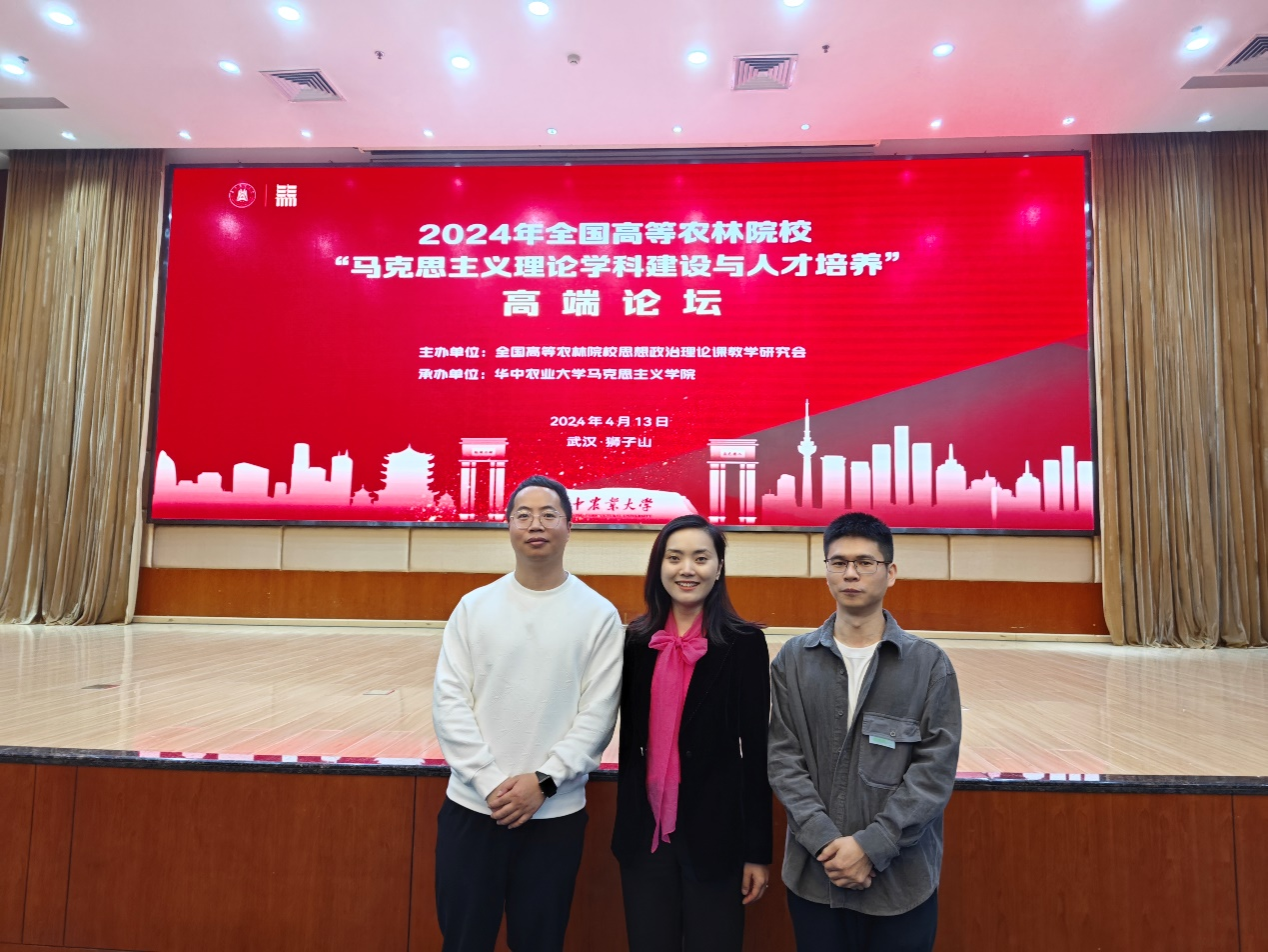 2024年4月13-14日,由全国高等农林院校思想政治理论课教学研究会主办、华中农业大学马克思主义学院承办的2024年全国高等农林院校“马克思主义理论学科建设与人才培养”高端论坛在武汉召开。来自全国农林类高等院校的领导、专家学者以及教师代表齐聚一堂,集中开展理论研讨和深入交流。马克思主义学院院长何思妤教授、冯义强、陈琼老师参加此届论坛。