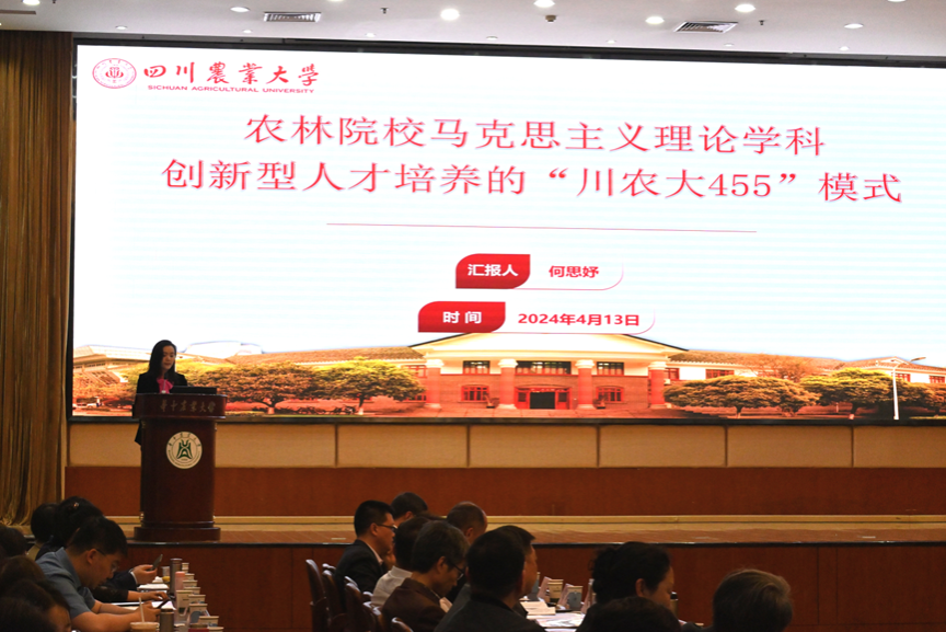 论坛包括主旨报告、交流发言、实践考察等环节。论坛中,何思妤院长发表了题为《农林院校马克思主义理论学科创新型人才培养的“川农大455”模式》的精彩报告。该报告详细阐述了“川农大455”模式的背景、内涵、理念和路径。何院长指出,随着新时代中国特色社会主义事业的不断推进,对马克思主义理论学科的发展提出了更高要求,尤其是农林院校,不仅要培养既懂三农专业知识,又具备深厚的马克思主义理论基础,同时能够将理论与实践相结合的创新型人才,从而更好地服务于国家乡村振兴战略和生态文明建设。该报告不仅展示了ok138cn太阳集团529在马克思主义理论学科创新型人才培养领域取得的显著成绩,也对其他农林院校提供了可资借鉴的经验与模式。