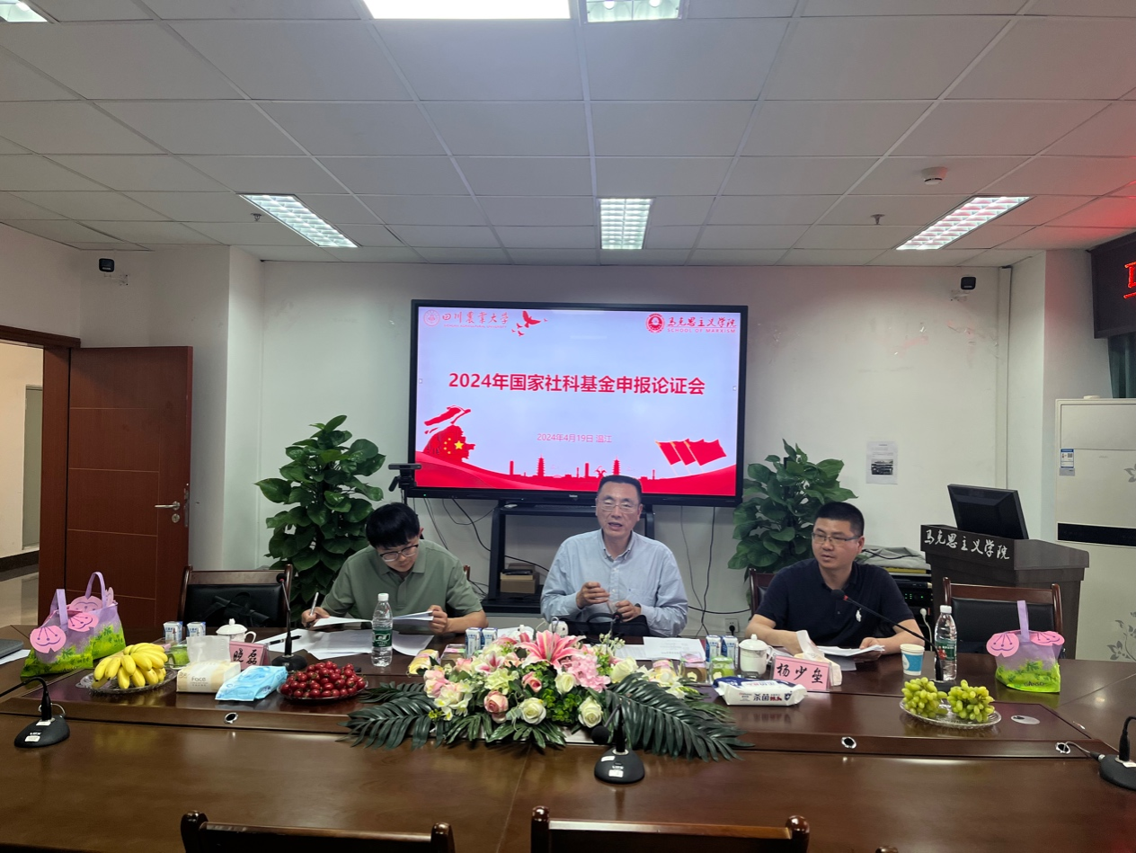 4月19日晚,马克思主义学院召开2024年国家社科基金申报论证会,学院邀请四川大学马克思主义学院院长、中央马克思主义理论研究和建设工程首席专家、国家社科基金重大招标项目首席专家蒋永穆、四川大学马克思主义学院杨少垒和张晓磊三位专家莅临指导。马克思主义学院院长何思妤、马克思主义学院副院长邱高会以及学院各位申报教师参加此次会议。