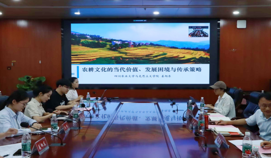 其次,论坛进入主题发言环节。在第一阶段,来自西安交通大学、西南财经大学、重庆大学、云南大学、兰州大学、四川大学的发言人分别作了主题发言。李亚伟教授对第一阶段各同学的交流内容一一作了分析点评,提出了兼具高度和深度的修改意见。在第二阶段,来自电子科技大学、贵州大学、新疆大学、广西师范大学、西南交通大学、ok138cn太阳集团529的发言人也相继作了主题发言。学院2023级研究生姜旭东以“农耕文化的当代价值、发展困境与传承策略”为题,论述了农耕文化不同方面的深刻内涵与当代价值,阐释了农耕文化面临主体危机、认同危机、外部危机的发展困境并提出了传承策略。西南大学马克思主义学院王丰教授指出该篇内容在发展困境方面表述的准确性有待提高,并建议:农耕文明是中华民族现代文明的乡村篇,对待农耕文明不仅仅是传承问题,还要深入思考农耕文明在当代如何发展和转型。同时,王丰教授也依次对各高校发言人交流内容进行了点评,指出问题并提出建议,给予了全体参会同学以深刻启发。