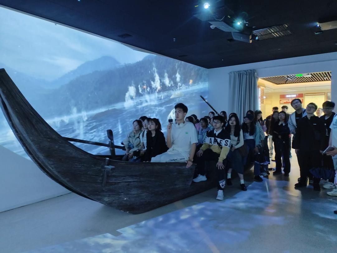 在新开放的“红军长征在四川”馆,师生们在讲解员的引领下通过大量实物和复原场景,全面了解了这段“总里程21000余里,转战地域30余万平方公里”的艰辛征程。化学2022级5班的赵汉笙对红军战斗时用过的枪炮、大刀尤为感兴趣,驻足渡船旁,他发出了感慨:“交战对手重点打击冲在最前面对己方威胁最大的突击力量,这是军事常理,冲在最前面的牺牲概率最高,但十七勇士明知山有虎偏向虎山行,这种不畏流血牺牲‘敢为人先’和‘志在必得’的革命英雄气概太伟大了”。
