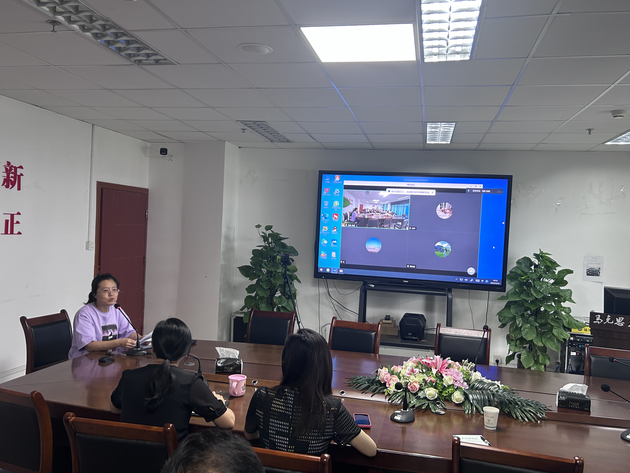 会议的第二个阶段是本科教育教学审核评估学院工作推进会议。何思妤院长介绍了学院思政课建设专项支持计划的基本内容,详细解释了学院在科研和教学方面的发展规划和支持政策;邱高会副院长传达了学校本科教育教学审核评估推进会议的最新精神,细化了教研室近期在评估材料准备方面的具体要求。最后,颜怀坤副书记就暑期社会实践研修活动作了具体部署。