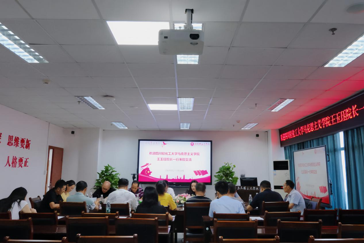 为深入贯彻习近平总书记关于思政课建设的重要指示精神,进一步提升特色马院的建设水平,9月12日下午,马克思主义学院与到访的四川轻化工大学马克思主义学院联合举行“特色马院”联合交流会。四川轻化工大学马克思主义学院党委副书记、院长王玉珏,党政办副主任杨宁松与马克思主义学院院长何思妤、党委副书记颜怀坤、副院长邱高会、各教研室主任、各教工党支部书记、研究生教学部相关负责人及部分教师代表参会。