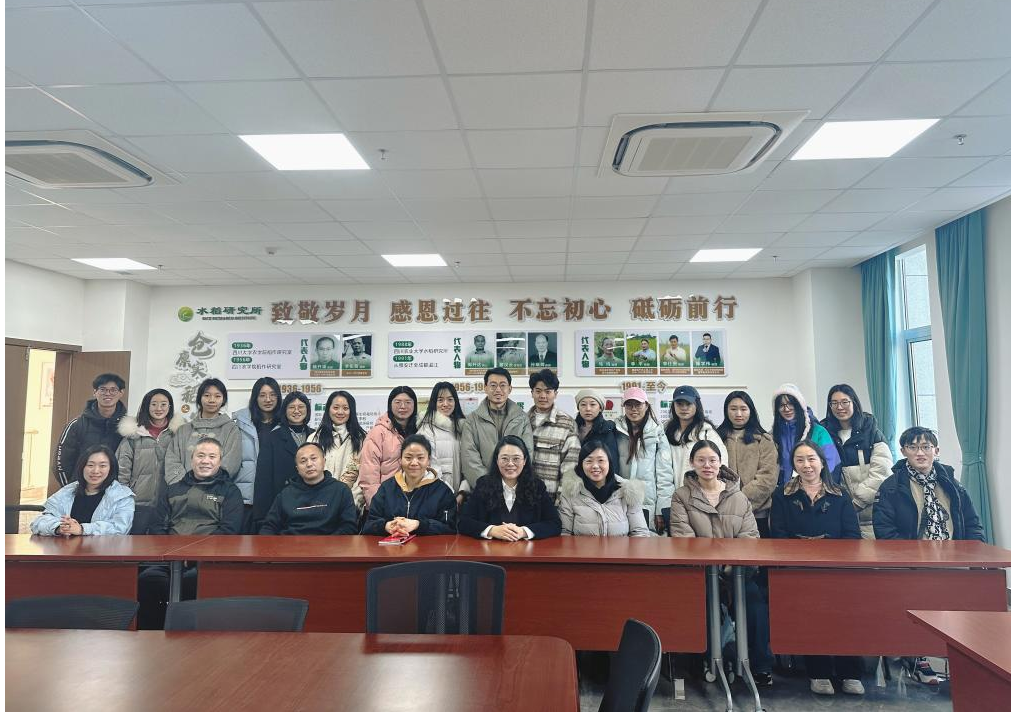 会议结束后,在庄萍萍书记的陪同下,全体参会人员参观了水稻研究所的实验室、文化墙和成果展示厅,进一步增强了对水稻研究所的认知、对水稻研究所人员的了解、对川农大精神的体悟。