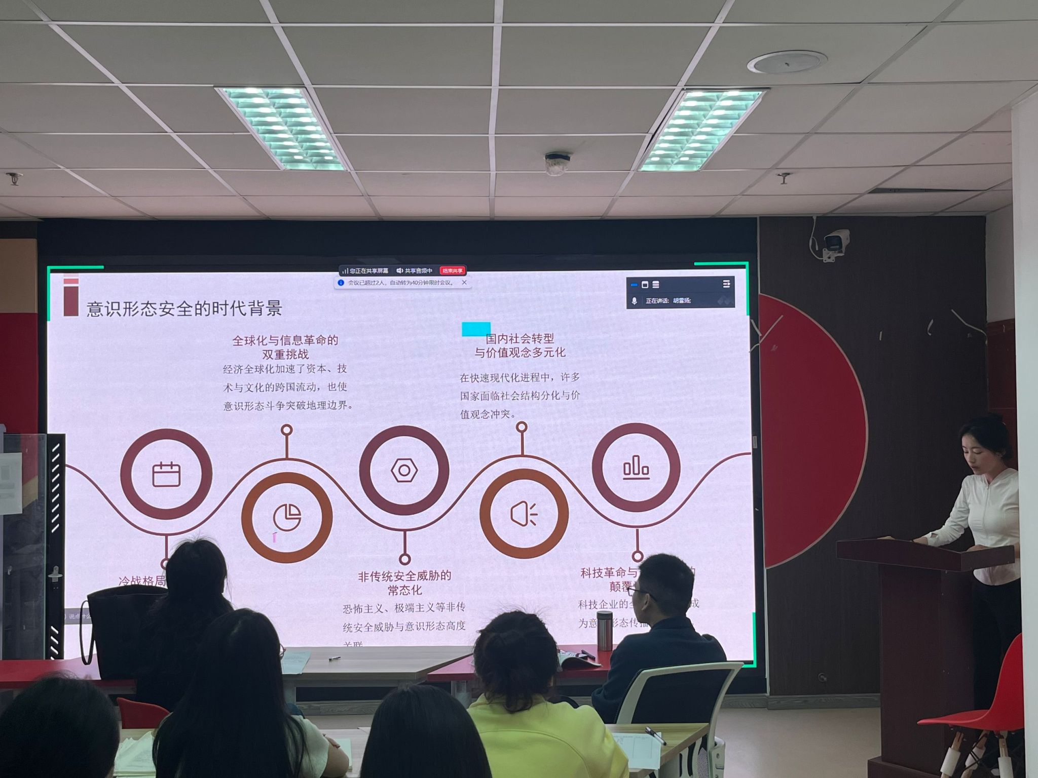 为了深入学习习近平总书记关于掌握意识形态工作领导权的重要论述,推动意识形态理论研究与思想政治教育理论研究深度融合,4月10日晚,思想政治教育专业读书报告会在学院1604会议室成功举办。本次活动以“意识形态安全”为主题,围绕学术界关于意识形态领域的5篇前沿学术研究进行深入探讨。窦存芳老师和陈琼老师莅临此次会议,思想政治教育专业2023级和2024级全体研究生到场参加。