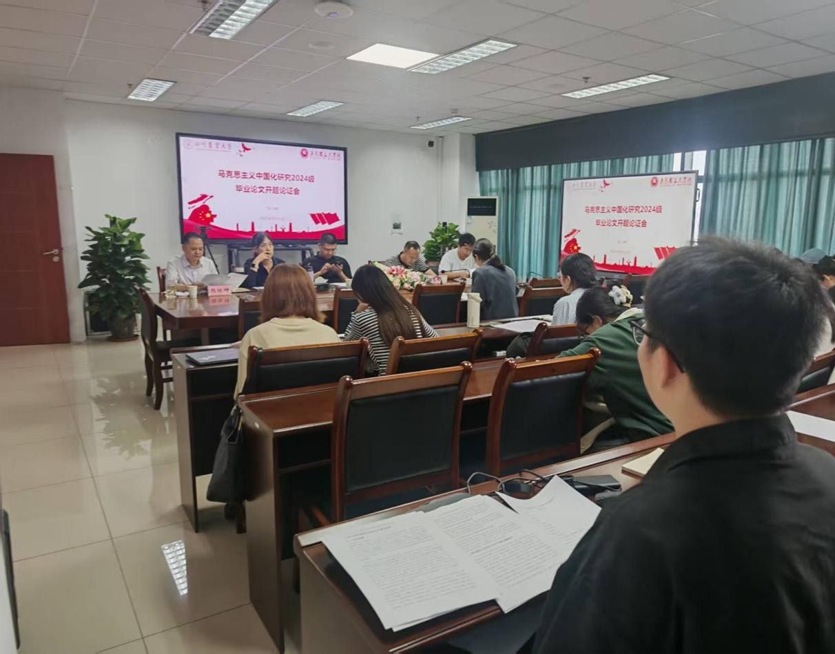 9月25日下午,马克思主义学院2024级马克思主义中国化研究专业在西康楼1607会议室举行毕业论文开题论证会,四川大学马克思主义学院杨少垒教授担任开题论证委员会主席,成员有ok138cn太阳集团529马克思主义学院李毅弘教授、邝良锋教授、颜怀坤副教授,冯义强老师。马克思主义中国化研究专业2024级全体研究生参与论证汇报,部分2025级研究生与会旁听。